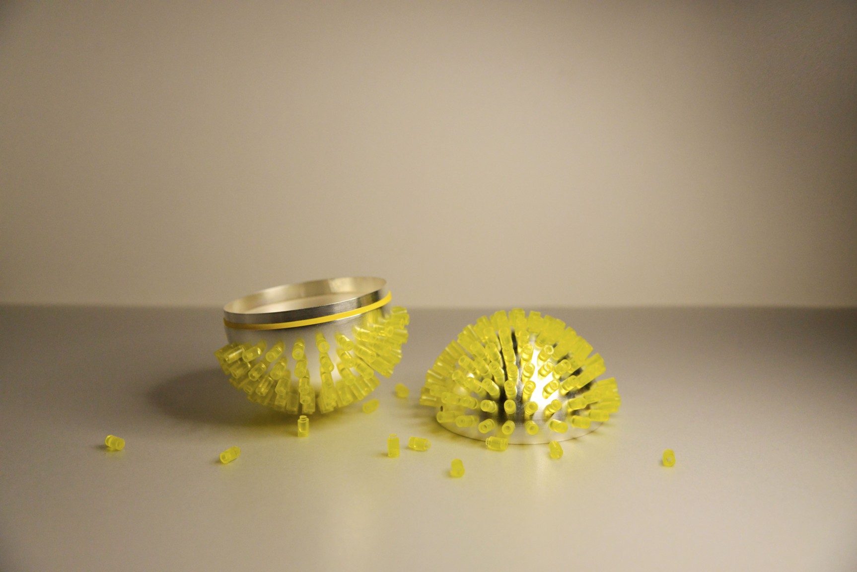 Dorothy Lu‘s Life is a Box explores that most everyday of items – the box. Each of Lu’s boxes – The four container-like objects – explore through experiments with materials, textures and structures how the edges, walls and rules we construct around us limit our behaviour. She says “Life is always mysterious, you can never tell what is happening, just like you cannot see through a sealed box and know the content until it is opened”.