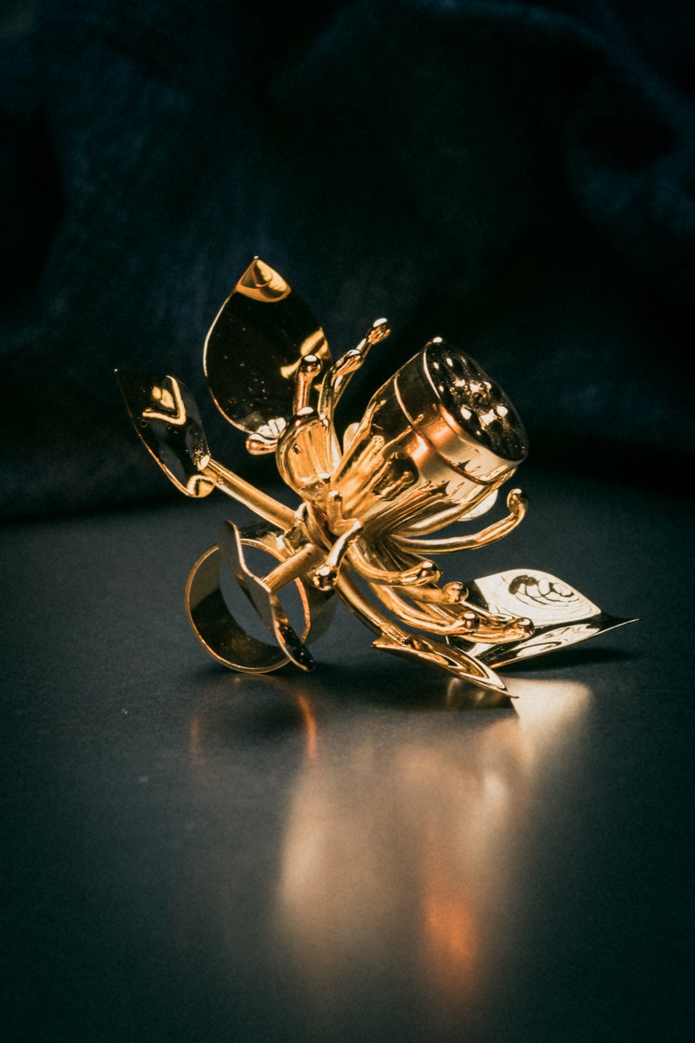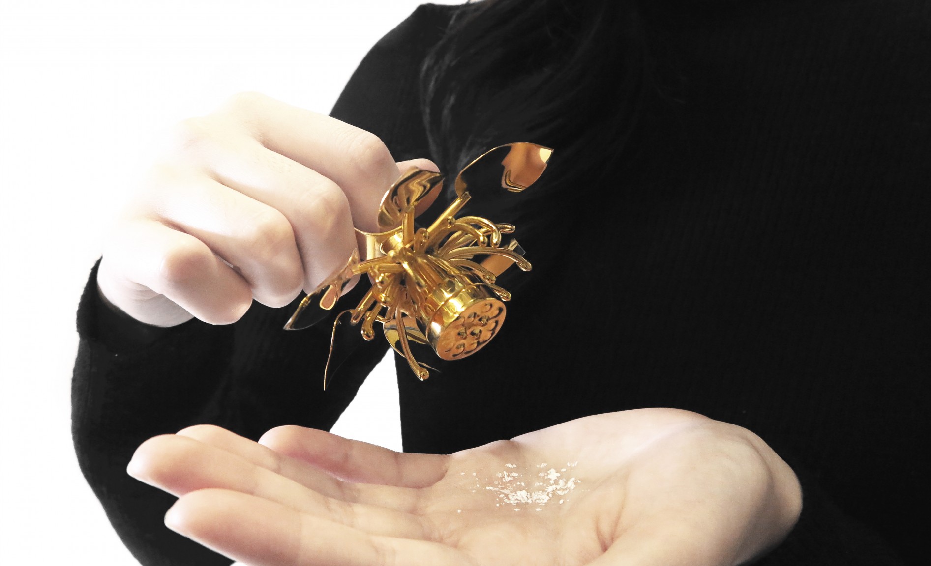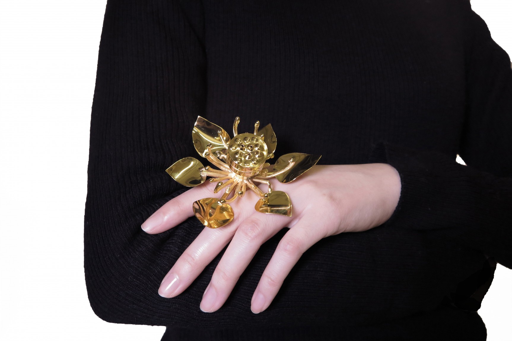 ‘Lotus Pearl Powder Ring’ is a functional lotus ring made in honour of Zhuji, Chen’s hometown. Zhuji is the most famous pearl city in China and is the home of Xi Shi, one of the four great beauties of ancient China. The ring’s rotary function represents the spirit of Xi Shi having an eternal presence in the world. The piece also acts as a container for pearl powder which is used to let people carry a piece of their hometown with them.