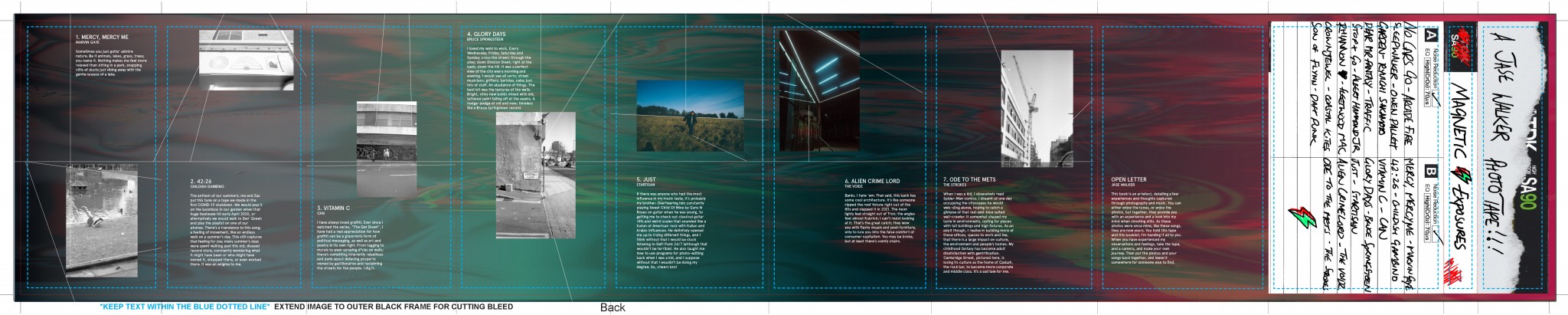 Magnetic Exposure is a photographic zine experience combining music, photography and copywriting. It intends to open up a gateway to the mind and experiences of Jase Walker as a stills photographer. The J-Card contains photography and commentary to be consumed alongside the cassette-soundtrack, creating a unique audio-visual experience.
