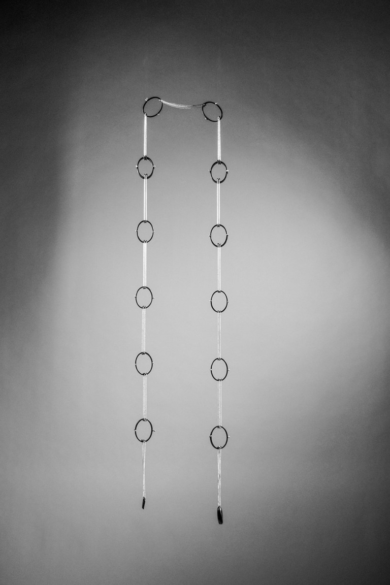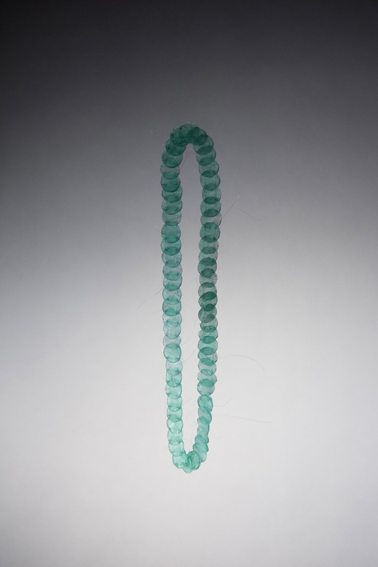 The inspiration for the project comes from an iconic brand of soap Zhang uses every day, with a wonderfully fresh scent and distinctive translucent appearance, which should be brought outside from the enclosed bathroom. She sees the potential in every substance and thus believes soap can be made wearable too. Handcrafted through jewellery tools, the form of soap has been completely transformed into a chain that can be displayed or worn anywhere. The bond between the material and its original environment has been broken so that it can be worn on the body or worn away from the body.