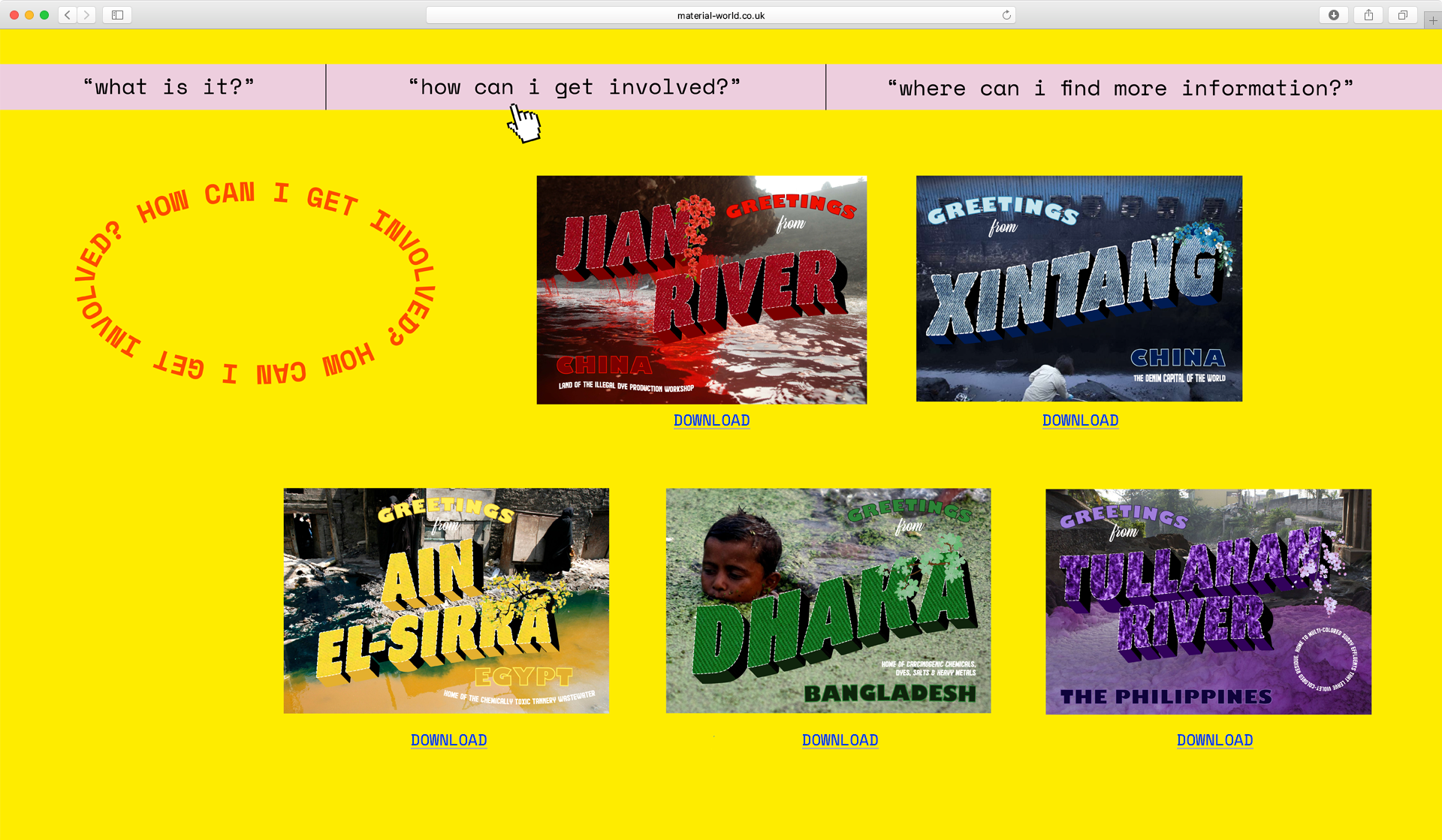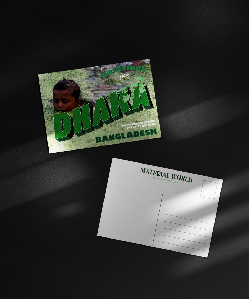 ‘Material World’ is a protest project aimed towards fashion designers, brands, and manufacturers about the long-lasting, damaging environmental impacts on global waterways that are caused by the fashion industry’s synthetic dye processes.