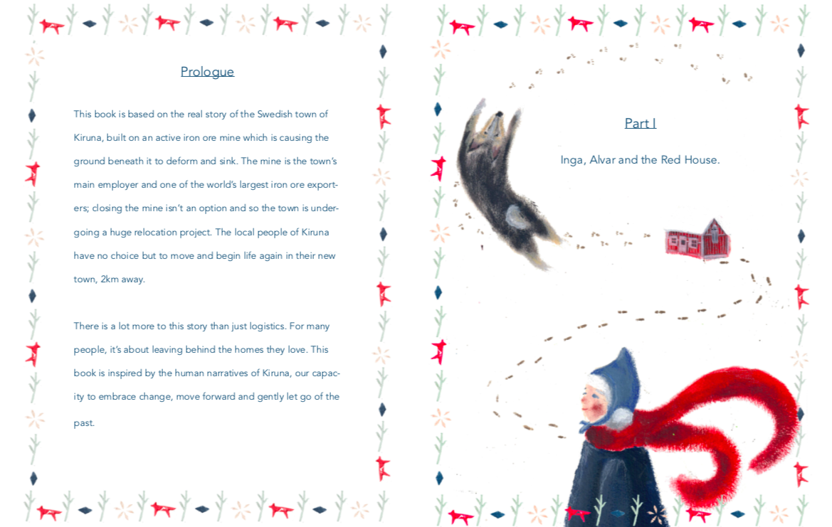 Illustrated by Evie Pernet and written by Evie and Jane Pernet, the book tells the story of a community of people who left behind the homes they loved to begin life again. The true story of Moving Kiruna is inspired by the human capacity to embrace change, move forward and gently let go of the past.