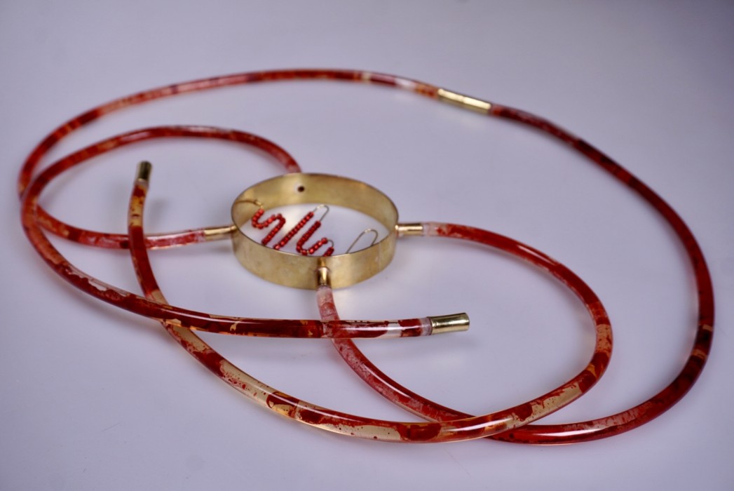 Yali Tan’s work is dedicated to the study of non-traditional jewellery, exploring the relationship between people and jewellery. Tan’s work also considers the wear-ability of jewellery in multiple ways, aiming to break the monotony of how traditional jewellery is worn, its shapes, materials, colours and definitions. Using a variety of materials and techniques, the work presents her development process and creative research to the viewer. Through the diverse forms of jewellery wear-ability, the wearer gains a more interactive experience and exchange of ideas with the jewellery. Jewellery is no longer just a wearable object that adorns the body, but also an object that conveys a person’s emotions or thoughts, allowing the wearer to express their thoughts and opinions while wearing it. At the same time, the variety of ways to wear a piece of jewellery gives it a different definition and breaks away from traditional concepts.