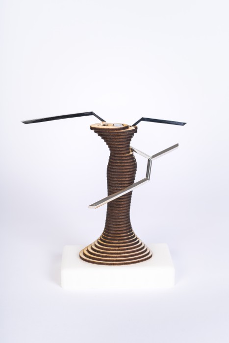 If Shen were a family member of a deceased person in a cemetery, he might prefer the tree to flourish so that season after season, the leaves of thoughts and greetings can fall off and be buried in the soil. Shen might have preferred that the tree had survived in good health so that it could carry more of my thoughts. It would help him to look after his departed family members when he has to return home less and less. So, Shen started making pendants in the form of branches that could be inserted into the base of a trunk-shaped installation. At the same time, they could also be hung with notes with messages. Shen chose to create the trunk and abstract branches in the shape of a Lohan pine bonsai. In traditional Chinese culture, the Lohan pine has a symbolic meaning of blessing the elderly.