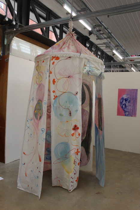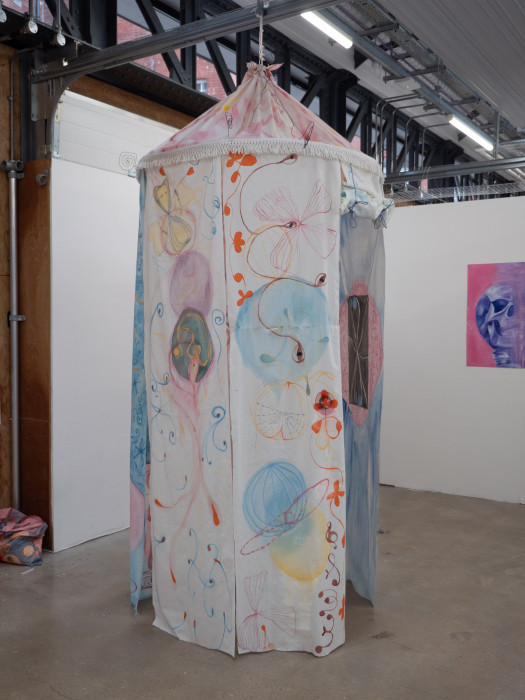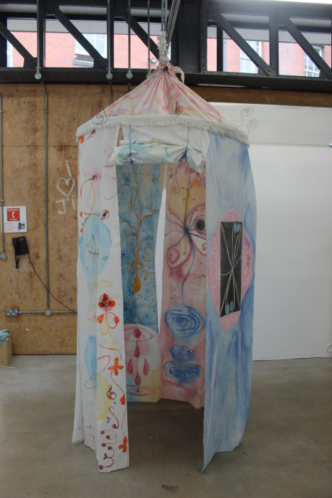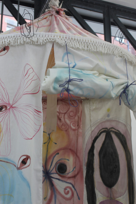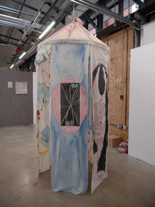 An attempt to transform a space into an offering of connection and healing. A circular structure to be entered that praises all that has been given to us from the non-human. The structure has seven panels with a shared rhythm that depict the cycle of a life.