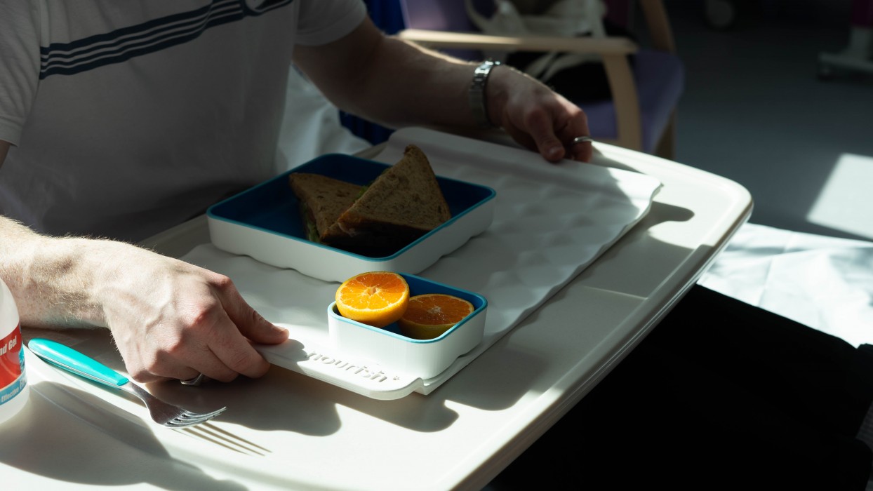 The NHS Health Research Authority stated, “People with dementia are particularly at risk of eating poorly in hospital because the daily routine, environment, and food are all different from what they are used to at home.” Therefore, the suite of products is designed to be modular, allowing for personalisation of food and drink placement, enhancing familiarity of mealtimes. This modularity also means desired portion size for any meal can be catered for using the same set.