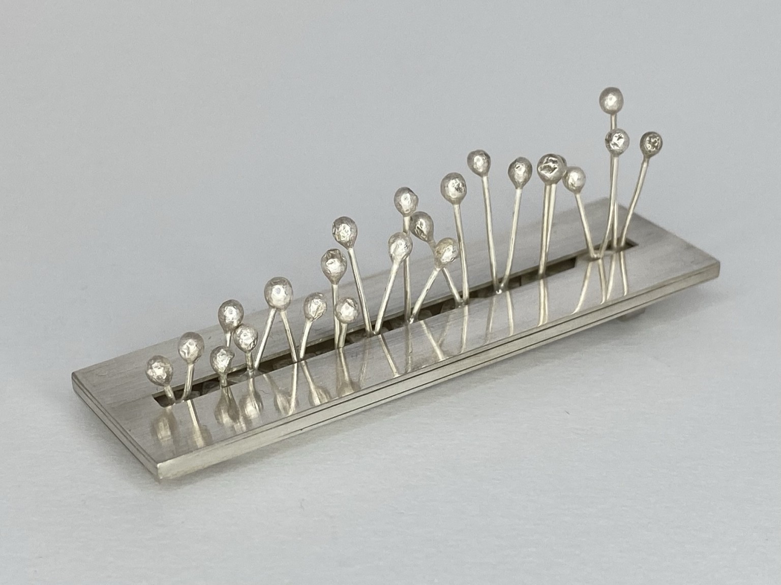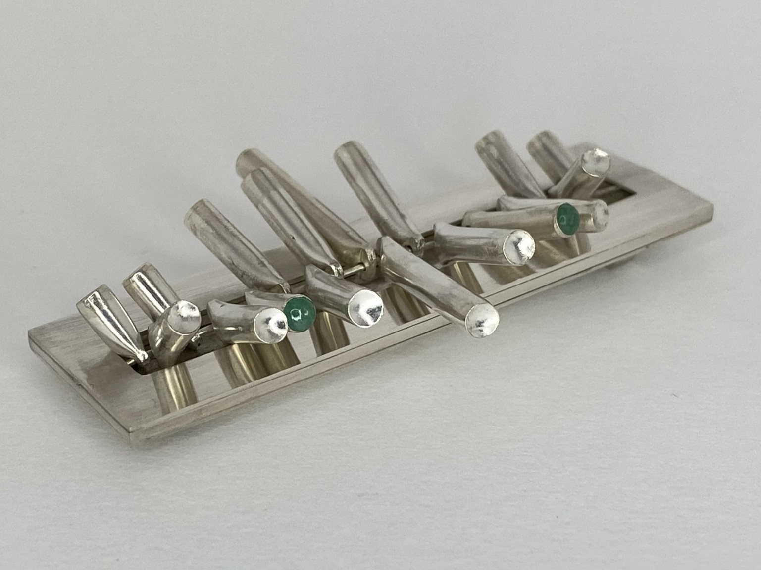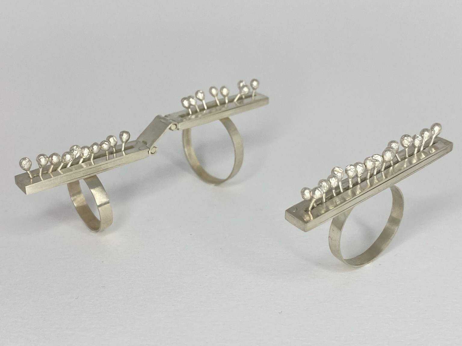 Duckering has explored this by abstracting the theme of nature and creating kinetic aspects within her collection. The use of kinetic elements combined with plant structures within the jewellery draws on these two calming and stress-relieving components, with the overall aim of reducing the wearers stress levels and raising their mood with nature-inspired aesthetics and kinetics.