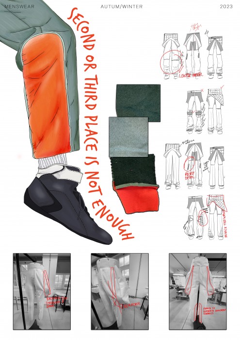 Catering to autumn/winter styles, the collection consists of four completed 3D looks which utilise thick, heavy materials and layered garments. It prioritises environmentally friendly fabrics. Accompanying the collection is a technical journal, portfolio, photoshoot and diffusion line.