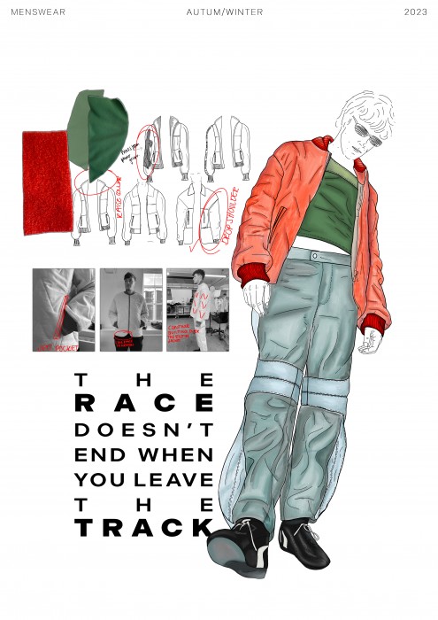 Secondary research involved F1 photographs from the 1970s, studies of the male form and examining past garments. This project specifically focused on the work of Rainer W. Schlegelmilch, a renowned motorsports photographer who dedicated his career to capturing the essence of F1 from the 1960s to 1980s.