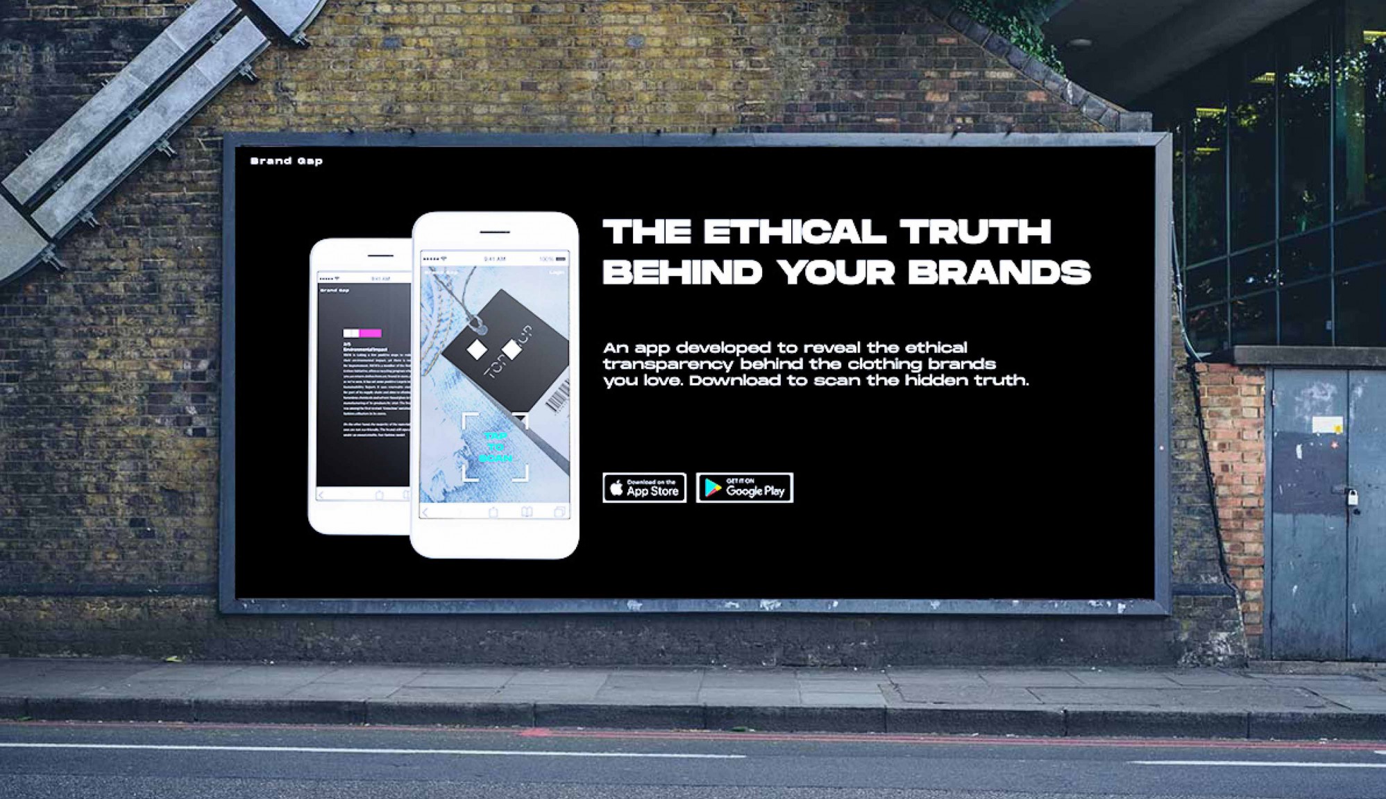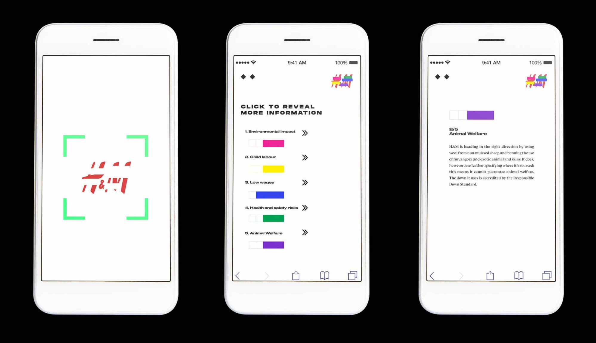 Conceptual app assessing the ethical transparency of any fashion brand. Users scans the brand logo revealing an ethical rating