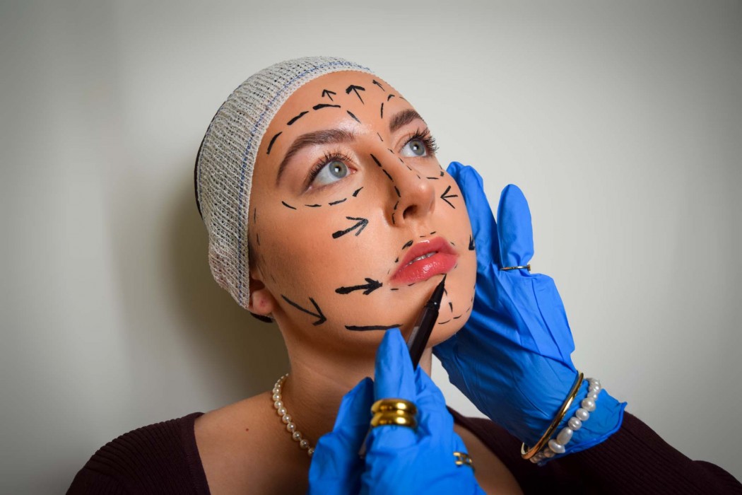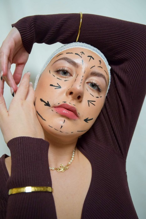 Throughout her project, Butler has presented different ideas through photoshoots. Shoot one’s aim was to represent the changes women/girls make to themselves to fit in, which are often related to different forms of media. The story starts with natural beauty, then moves into contouring, corsets and measuring and finally the biggest step of plastic surgery. This was done to create a dramatic effect to show the real long-lasting dangers behind these ideals. Shoot two’s aim was to show the damages these standards can do to mental and physical well-being. Shoot three’s aim was to show the most authentic self with no need to conform to these standards.