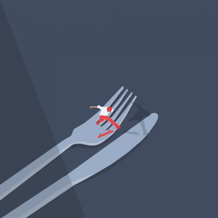 This self-driven project aims to explore how humans relate to their own creations. Adam Roberts wanted to approach this through satire, depicting individuals interacting with objects which have been warped in size. Roberts used a limited colour palette with minimal detail to challenge himself to focus on composition. Roberts did this as he wanted the composition and perspective to be the focus of these pieces. The outcome of this project resulted in pieces of work that convey a message about how we have surrounded ourselves with inventions that now overpower us.