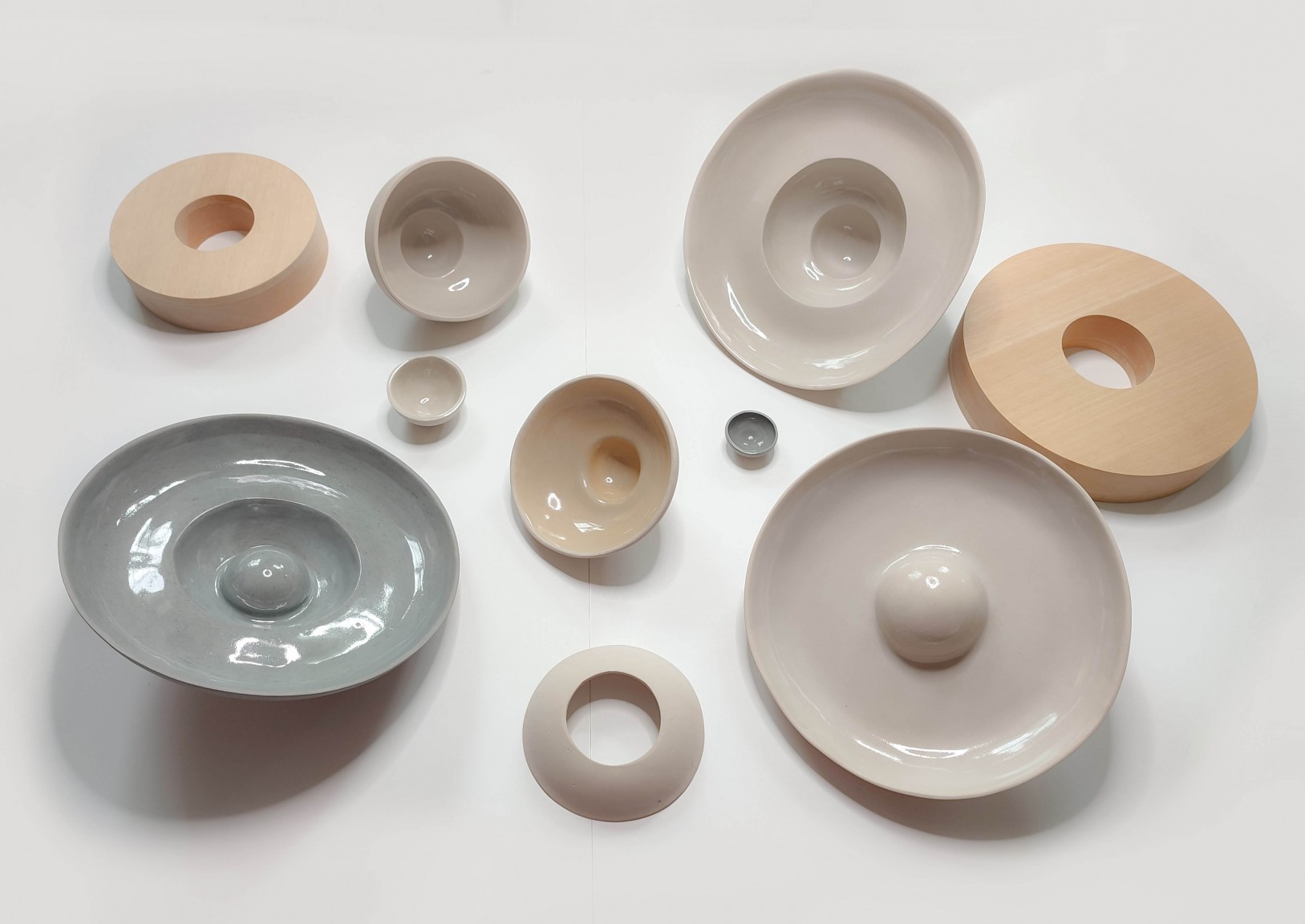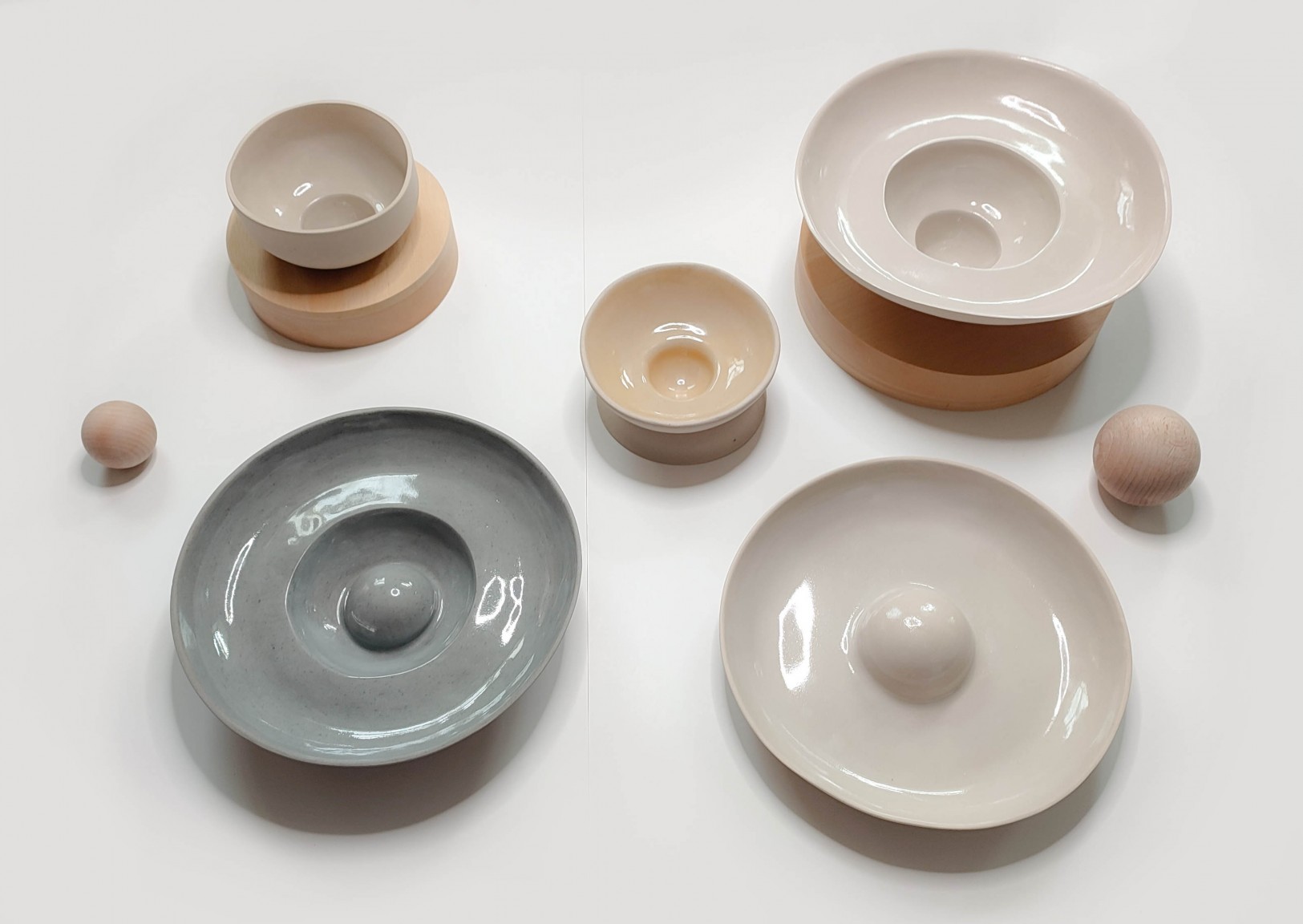Malgorzata Rusek‘s project is focused on creative crockery that inspires playfulness and has created a selection of plates and vessels that are characterized by unusual shape and movement. These designs are meant to ignite a creative spirit to play with food and ground oneself in a mindful moment. The pure experience of playfulness was the sole goal of this project.