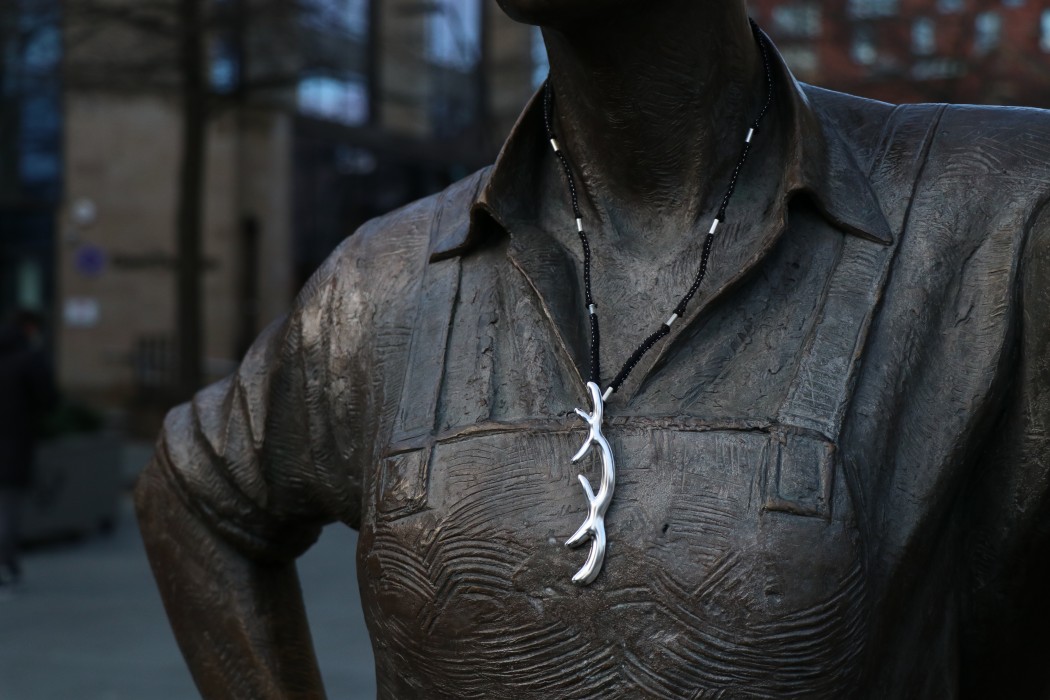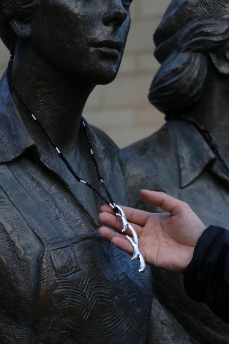 Inspired by their grandmother’s story as a victim of foot binding, Ruimeng Wu, uses the history of foot-binding and Nüshu (a written script used exclusively by women in Jiangyong County, China up to the 20th century) in ancient China, to explore the constraints women were subjected to and their quest for freedom, equality and identity. Wu’s jewellery uses elements of Nüshu to convey the unity and strength between women on the journey from bondage to liberation. Wu says: “Each piece of jewellery is a symbol that bears witness to women’s power of resistance and self-identity. Through this series, I hope to cause the audience to think about women’s history and inspire the desire for equality and freedom. This is not only jewellery a call for female power, freedom and equality. Through my works, Nüshu becomes a symbol to express people’s identity.”