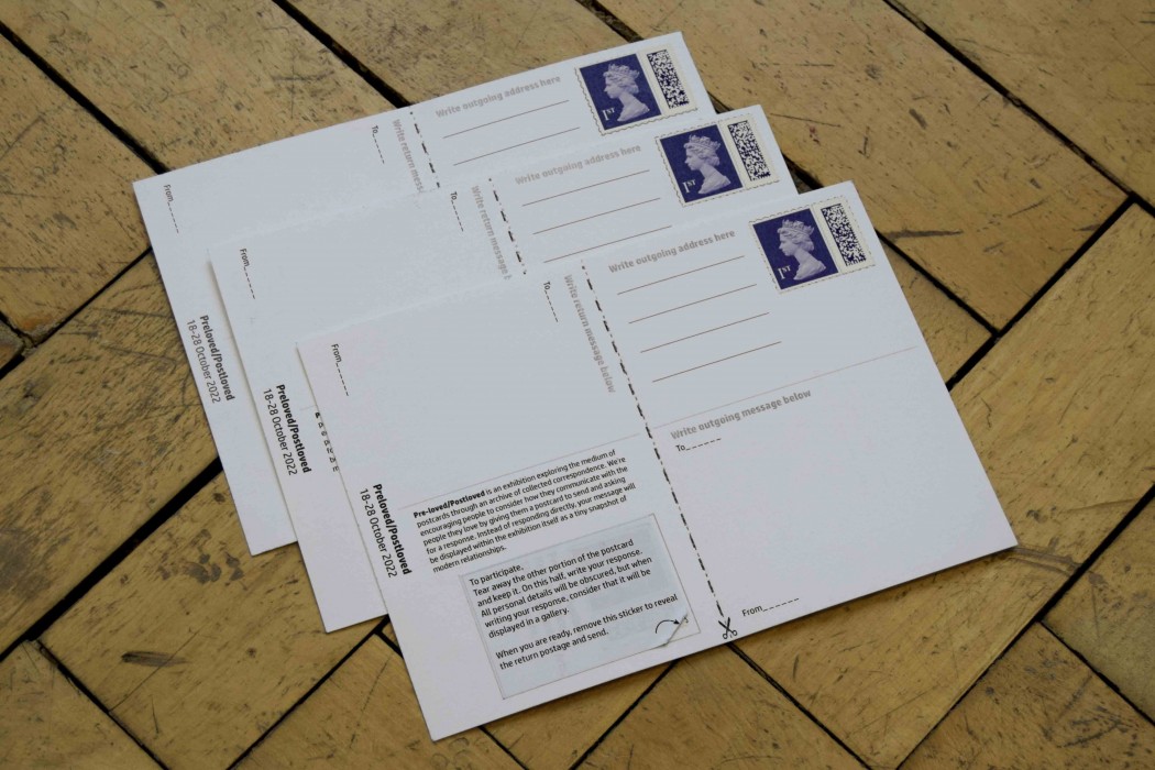 The project was developed through collage visualisations of immersive elements, exhibition branding, and displays. The interactive elements were realised as postcards that, once sent, can be split in half by the recipient and used to respond. These responses are pre-addressed to the head post office and would be put on display as reflections of 21 st century communications.