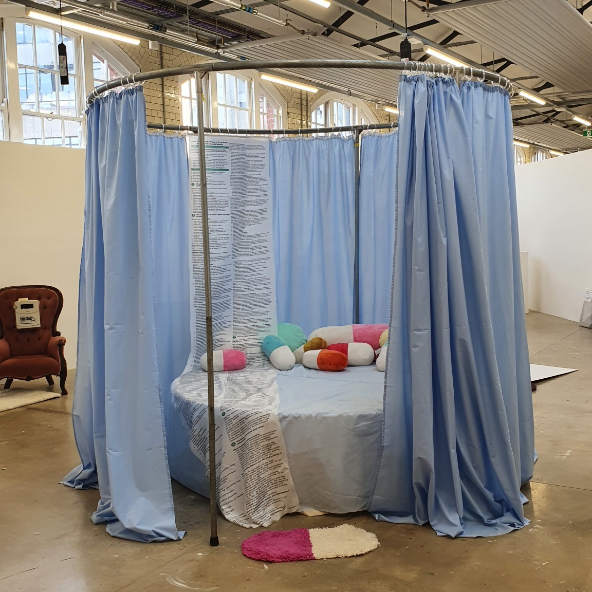 Prescribed Bed Rest explores the relationship between art, science, and life by taking a critical view on health, society, and history. Barlows current work investigates the nature of medicine, looking at the roles of comfort and care in medicine and exploring side effects – not just the ones listed on the packaging. She hopes to help break down the stigma that often surrounds taking medication and encourage healthy open discussion about medication and health issues.