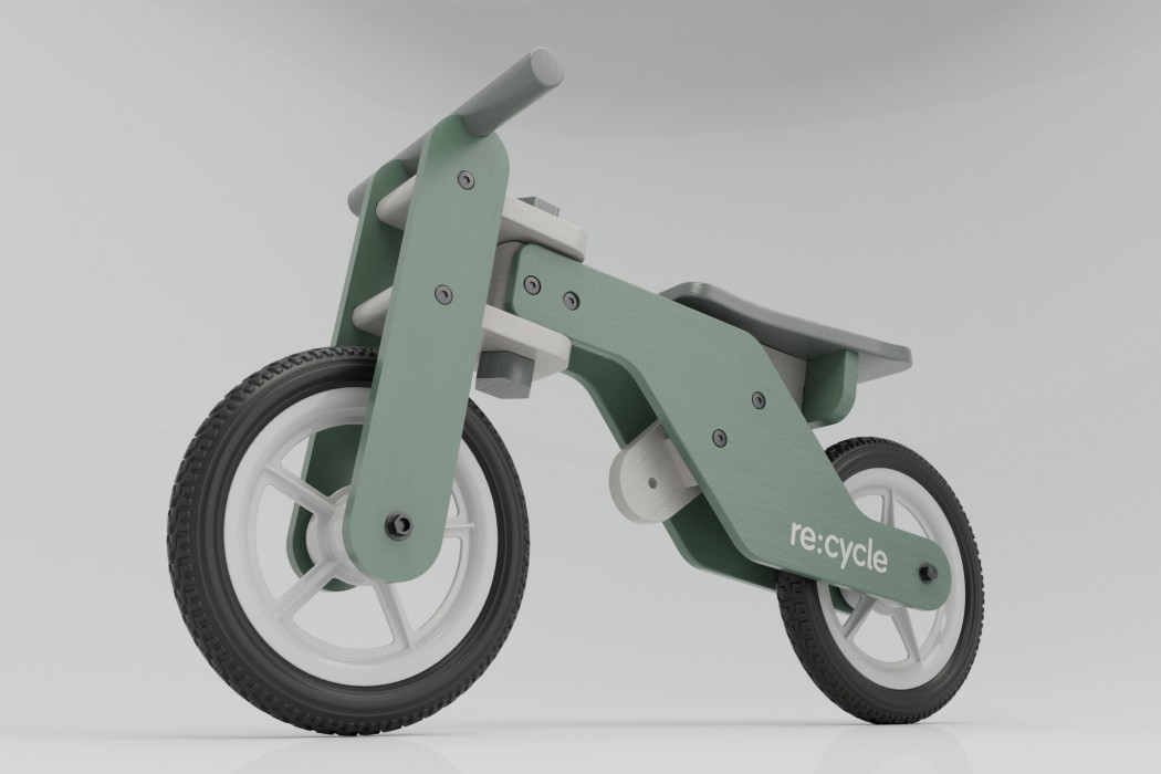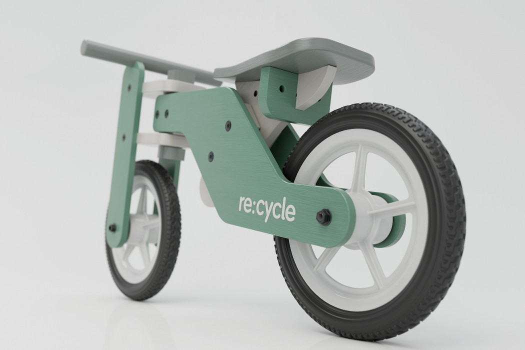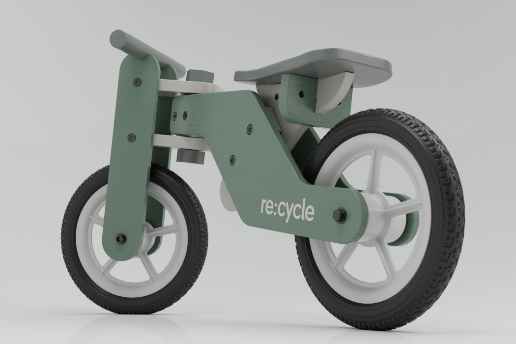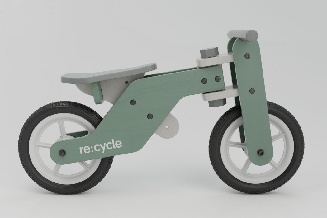 Re:cycle is a balance bike, using recycled materials, to benefit the development of children, whilst helping to reduce waste and help in the fight against global environmental issues.