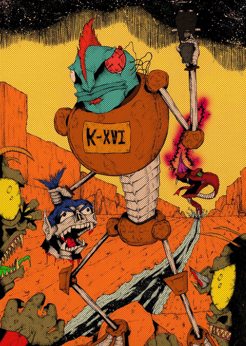 For Almond his work is “is all about fun, just making stuff people enjoy the way I enjoy the artists I love”. He is an illustrator and collage artist, using pen and paper to draw figures, characters and scenes. His collages are inspired by old school Punk Rock and Dada, mixing digital methods with analogue materials.