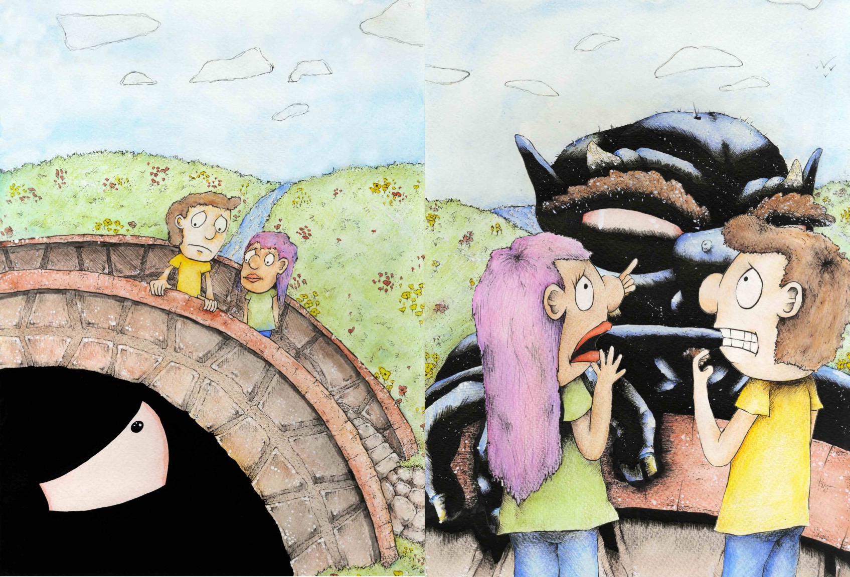 Watercolour, fineliner on watercolour paper