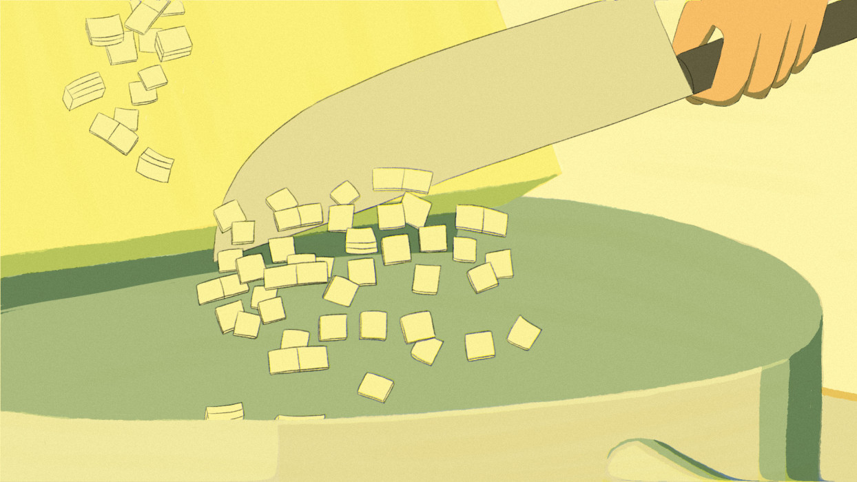 A man goes through the process of making a meal. Throughout the preparation of the meal he has flashbacks to a time when he was at war, which is brought about by the sounds of cooking.