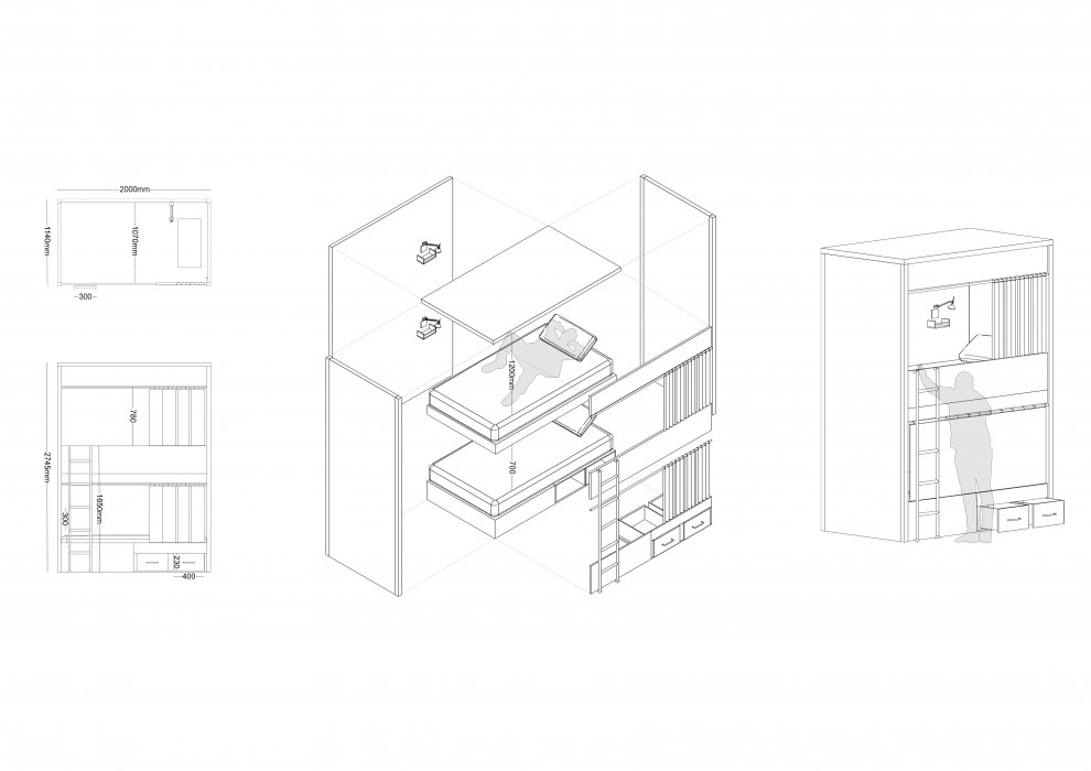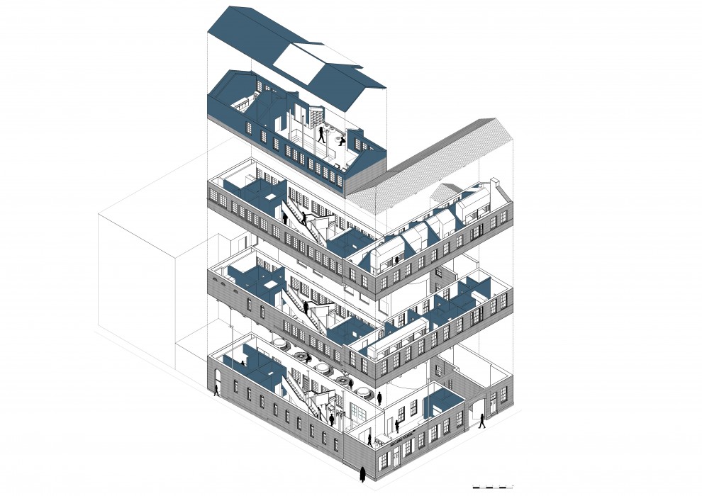 Freya Farrah’s projects proposes a 24-bed cutlery-inspired hostel within the heart of Sheffield city centre. Farrah’s proposal includes refined methods of re-involving steel history within Sheffield’s Sellers Wheel. This includes a table etiquette inspired staircase, bespoke cutlery draws and Sheffield stainless steel engraved finishings. Farah’s design includes a mix of private, public and shared spaces. The ground floor has a carefully curated hostel reception closely linked to a public café space. The first floor consists of an eight-bed dormitory room, a staff room, two laundry rooms and two private double bedrooms. The second floor accommodates two dormitory rooms (one four and one six-bed) along with one private double bedroom and a laundry room. Both the first and second floors have shared bathroom blocks as well as private bedroom facilities. The new extended third floor now accommodates a shared kitchen-lounge space with an external roof terrace. The Sellers Wheel Hostel will attract a new economy to Sheffield with a higher number of tourists visiting our city.