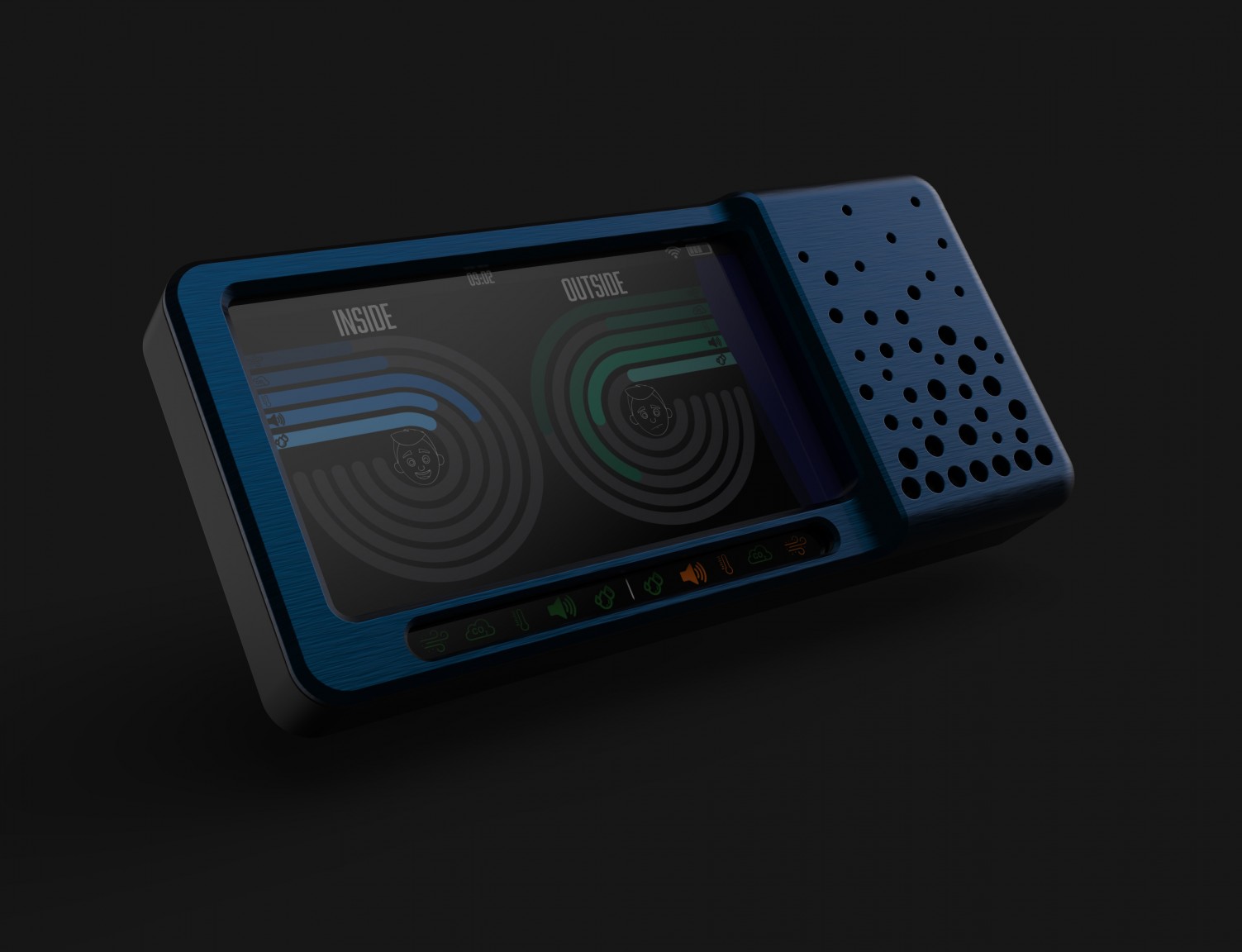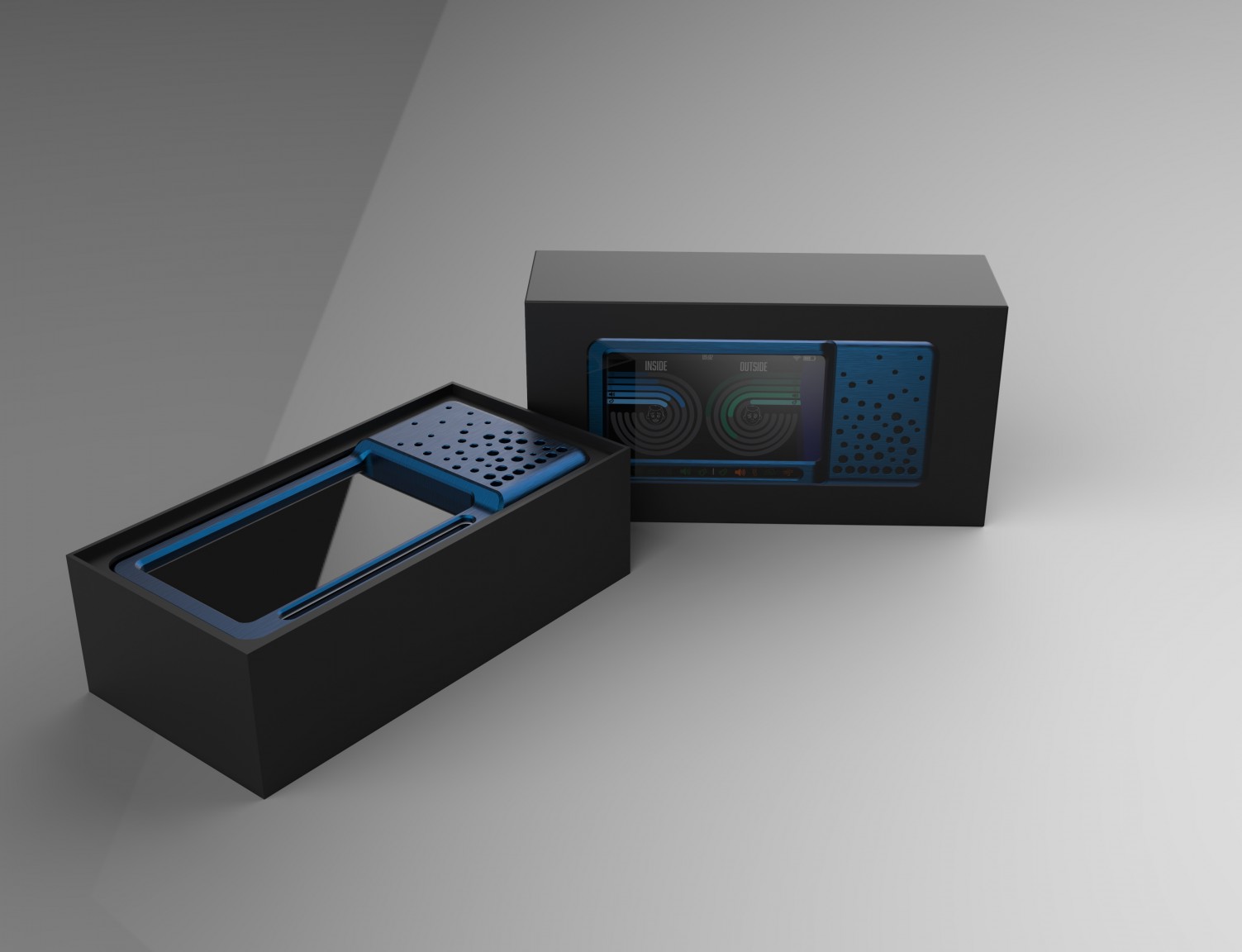 A smart home air quality monitor which monitors both indoor and outdoor air quality forms Joe Faulks’ graduate project. Many illnesses can be worsened by poor air quality such as heart and lung conditions. The air quality monitor can records temperature, humidity, CO2, noise and particle matter informing enabling users to take action to improve unhealthy air qualities in the house to benefit their overall health. For Faulks it is important for “the customer to feel the product that they have bought has been designed specifically for them”. To this end, Faulks allows the customer to choose from a range of colour schemes and create customised profiles within the monitor.