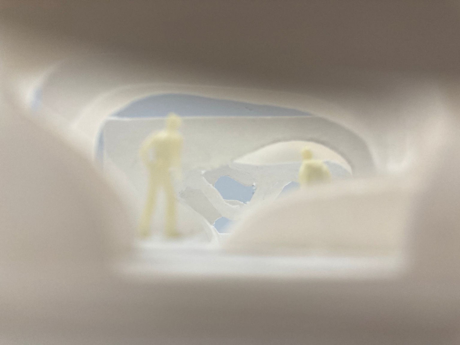 Pangani’s project revolves around the concept of creating a hidden gem of a station, catering to the needs of travelers. She meticulously examined the essential requirements one may have while journeying and explored how to incorporate them into her design. Recognizing the significance of not just functionality but also aesthetic appeal, she endeavored to make the station visually captivating and engaging for both locals and visitors exploring Sheffield and its surroundings. To achieve this, she incorporated fluid forms into the architectural design.