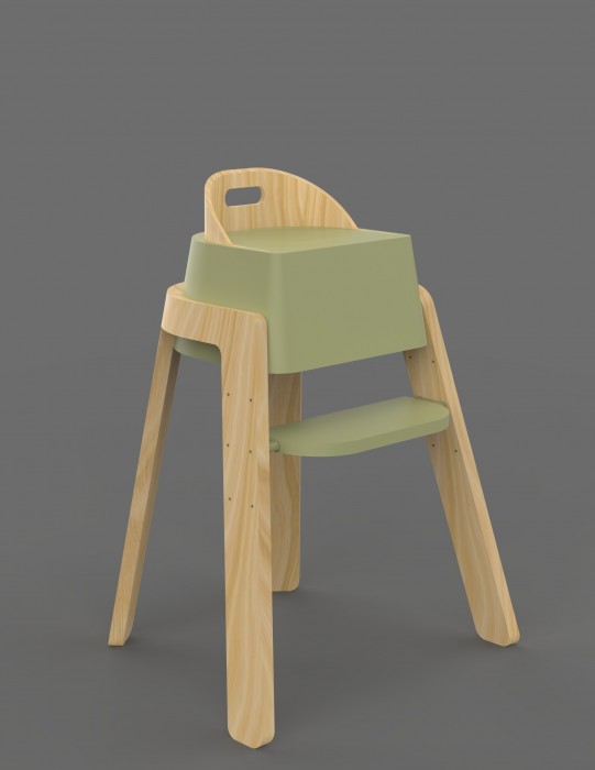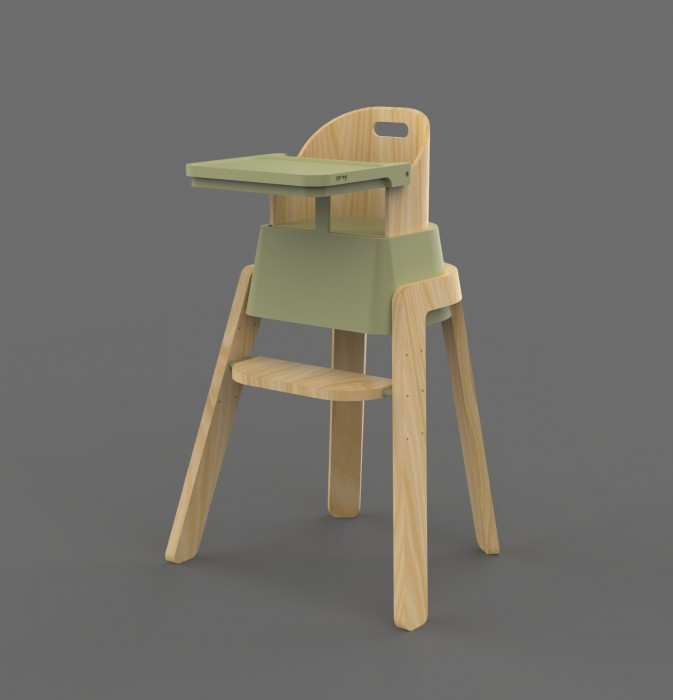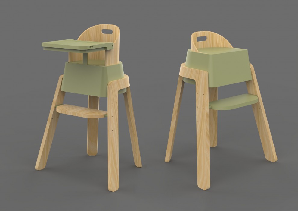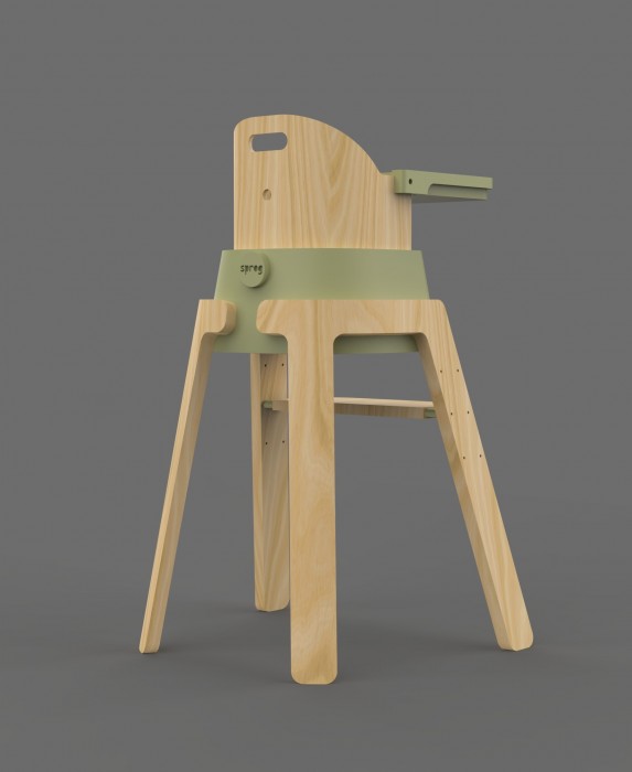 This product includes an adjustable footrest, removable tray table, 3-point harness and additional inflatable, easy wipe seat and backrest cushion. Four colourways are available for the highchair to suit the customer’s home. Ergonomics and anthropometric data were carefully used to deliver a user-friendly product. Made from sustainably sourced wood and plastic the sprog highchair is designed to last for generations.