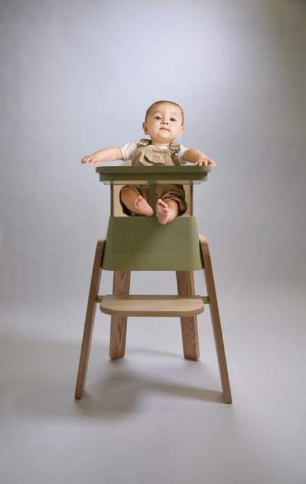 Sprog is a highchair designed to grow with the child. Suitable to be used from aged 6 months with no upper age limit, it is intended to be used for as little or as long as the child desires. Once the child has outgrown the highchair it can be turned into a stool to be used around a dining table as part of the dining furniture. Whilst in the stool position it can be pushed under a dining table to be stored away, which saves time and storage space.