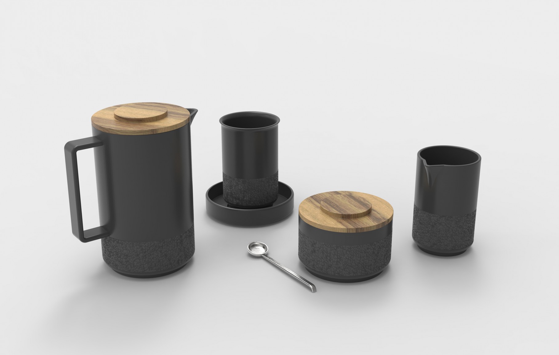 Beata Harding’s Steep is a cross cultural tea set, influenced by tea drinking cultures from across the world. The porcelain and olive wood tea set is designed to be a social catalyst, allowing for many different ways of preparing tea and facilitating positive, shared experiences through education and social interaction. It’s functional design allows for easy storage and cleaning.