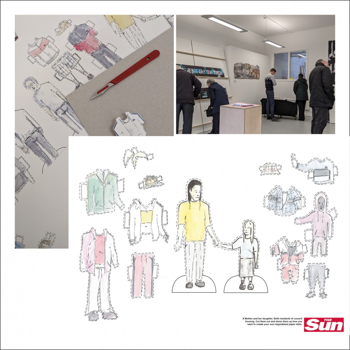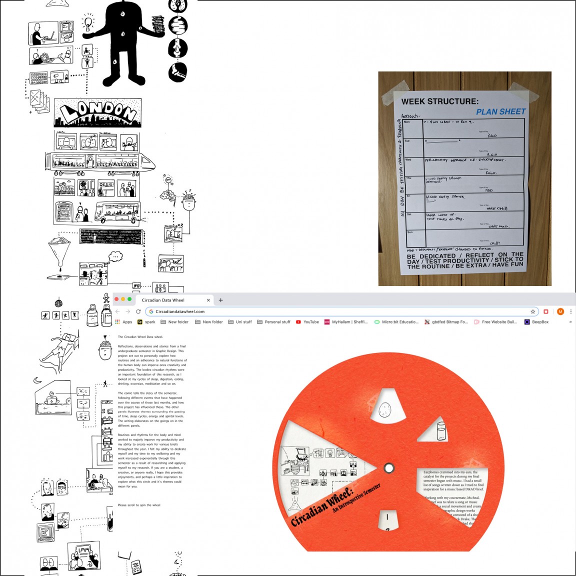 “The suit itself is something I am incredibly proud of. Over the course of a Christmas holiday, my living room at home became a tailor’s workshop of sorts as I gave myself a crash course in sewing and suit making. Much to my huge relief, the tarpaulin I had bought worked perfectly in the sewing machine, and I returned to university with a functioning plastic suit. To realise this suit in reality and bring it to life, I used photography and photoshop to compose photos of the suit being worn on the streets of Sheffield. The final publication captured both the final work and the process of creating the suit. The intention is to use it to open a discourse about our approach, as a society, to how we help vulnerable people on our streets.”