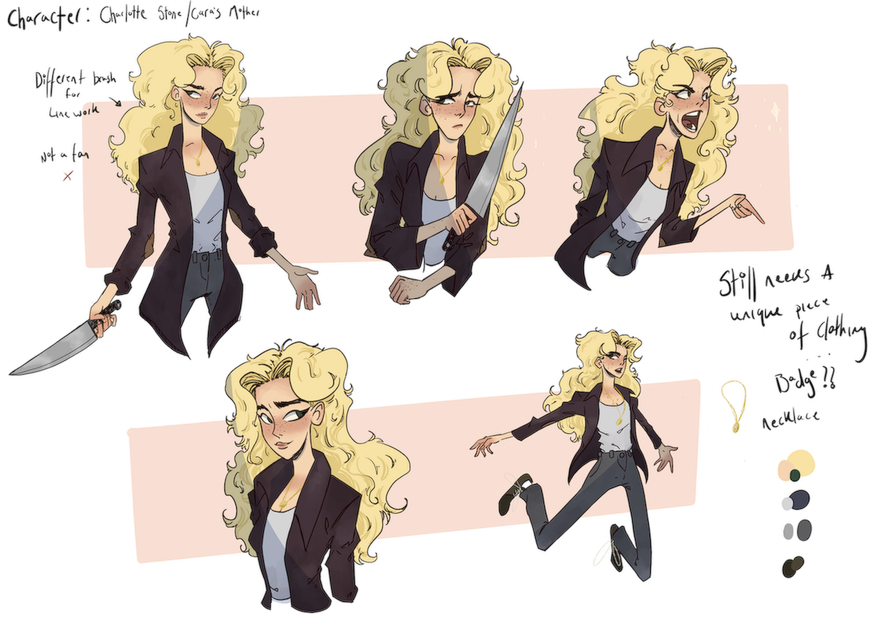 To accompany his artwork, Dearman also created stories for his characters, inventing context and background to help with his design choices. He includes these descriptions within the art book, so the work can follow a running narrative and tell a story. This addition intends to capture reader interest and enhance their understanding of the characters.