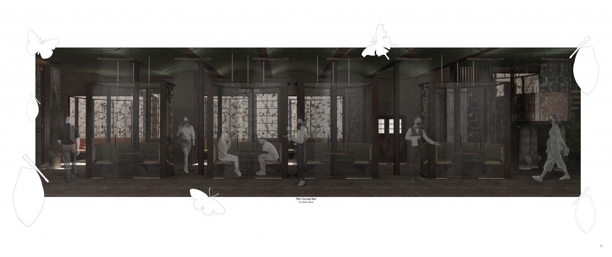 The closure of the hospitality industry during the Covid-19 pandemic had a profound and negative effect on both the economy and people’s wellbeing. Sammy Gibson‘s Cocoon proposes a solution to the lockdown of bars, restaurants and pubs, allowing these venues to conform with government guidance and slow transmission rates of Covid-19 whilst remaining open. Gibson also suggests how  the design be manipulated to accommodate patrons when Covid-19 is under control