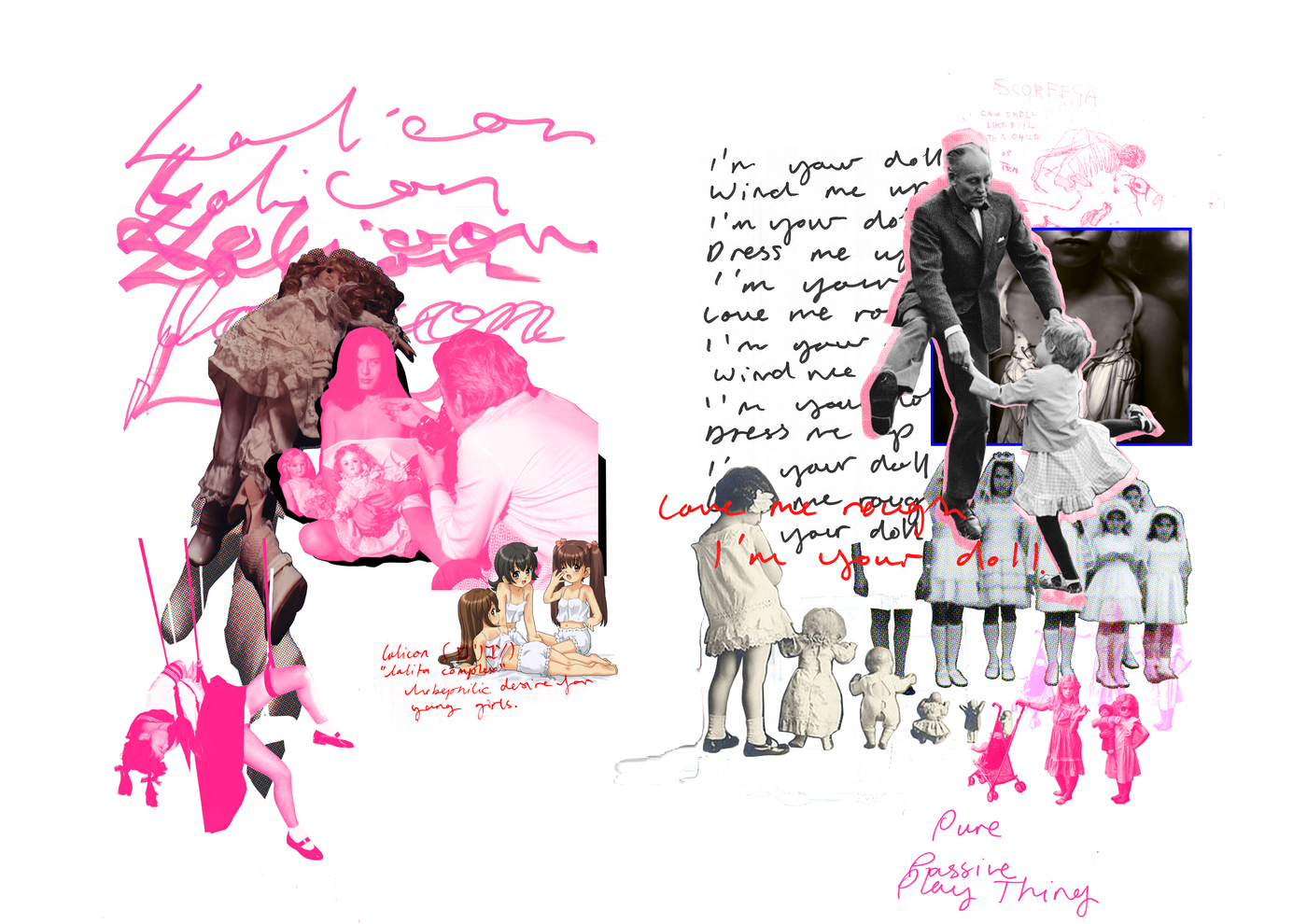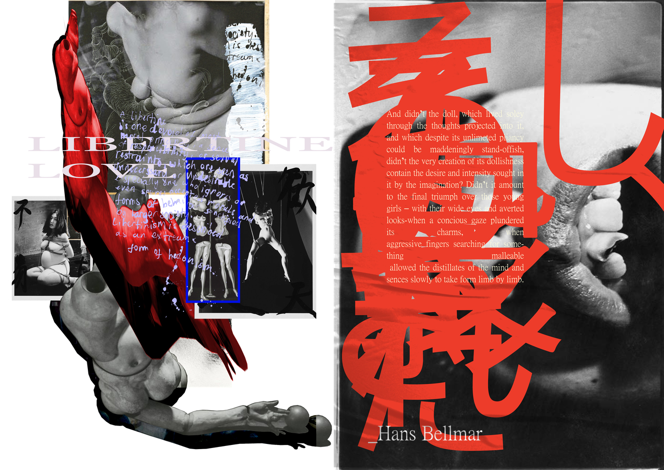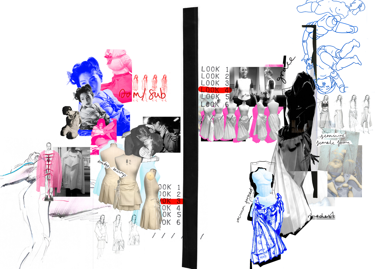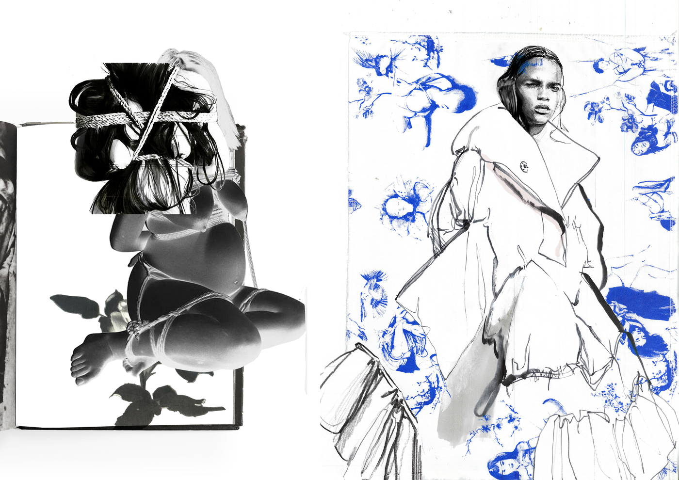 Hans Bellmer’s The Doll provides the muse for Rosie Coggin Levy’s graduate collection: Beautiful, pure, passive, a man’s plaything. The doll, Girl abides and is puppeteered in a man’s libertine, self-serving fantasy, where Shibari (Japanese rope bondage) becomes a character in Girl’s life, a representation of restriction in all the forms it takes: Man.