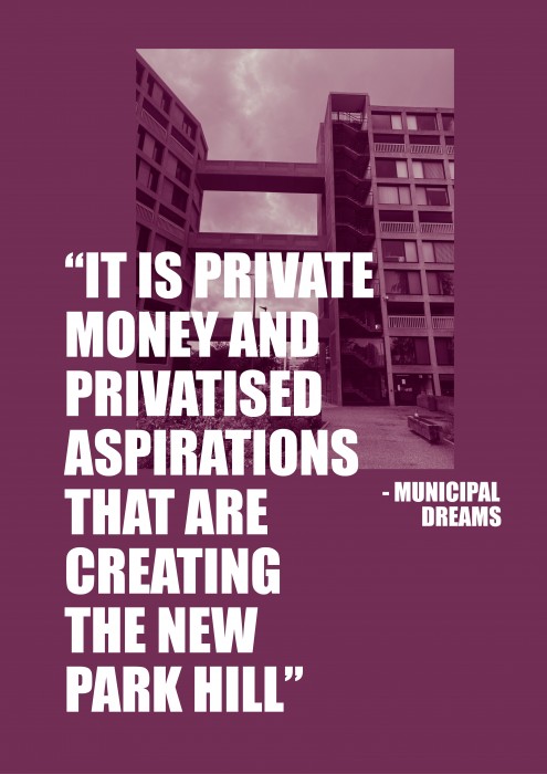 The Facade of Park Hill is an exposé piece exploring the history of Park Hill. Using print and digital media, Meg Spencer illustrates through publication design and a series of posters of how Park Hill went from being social housing after the war, to private luxury apartments that are completely inaccessible to those it was originally built for.