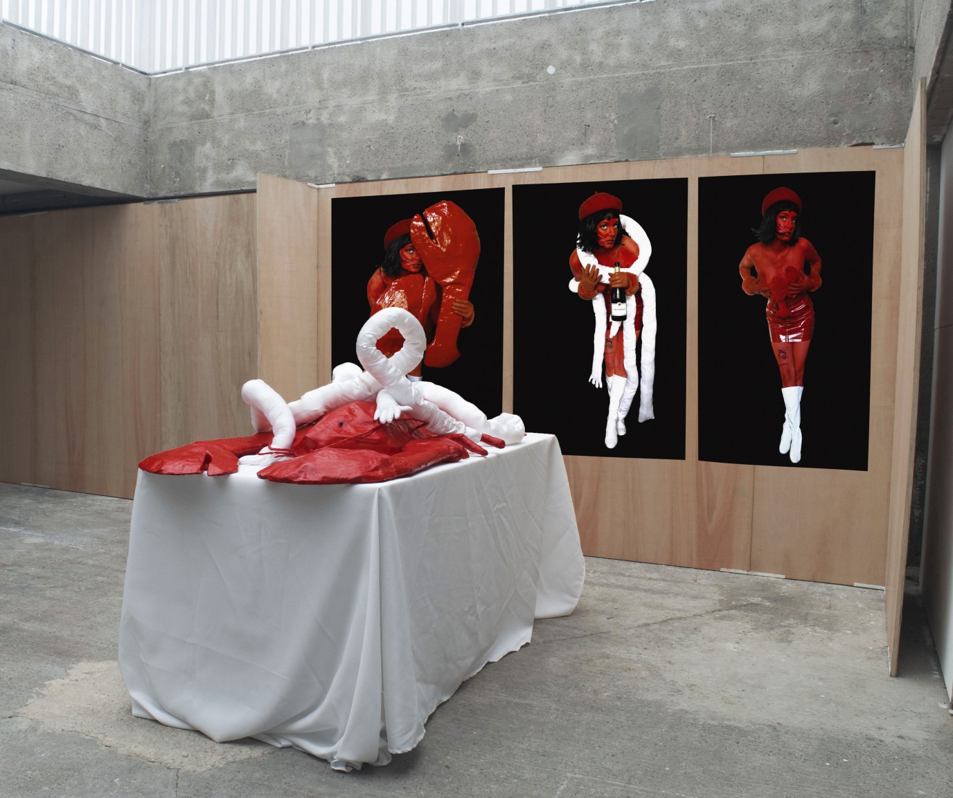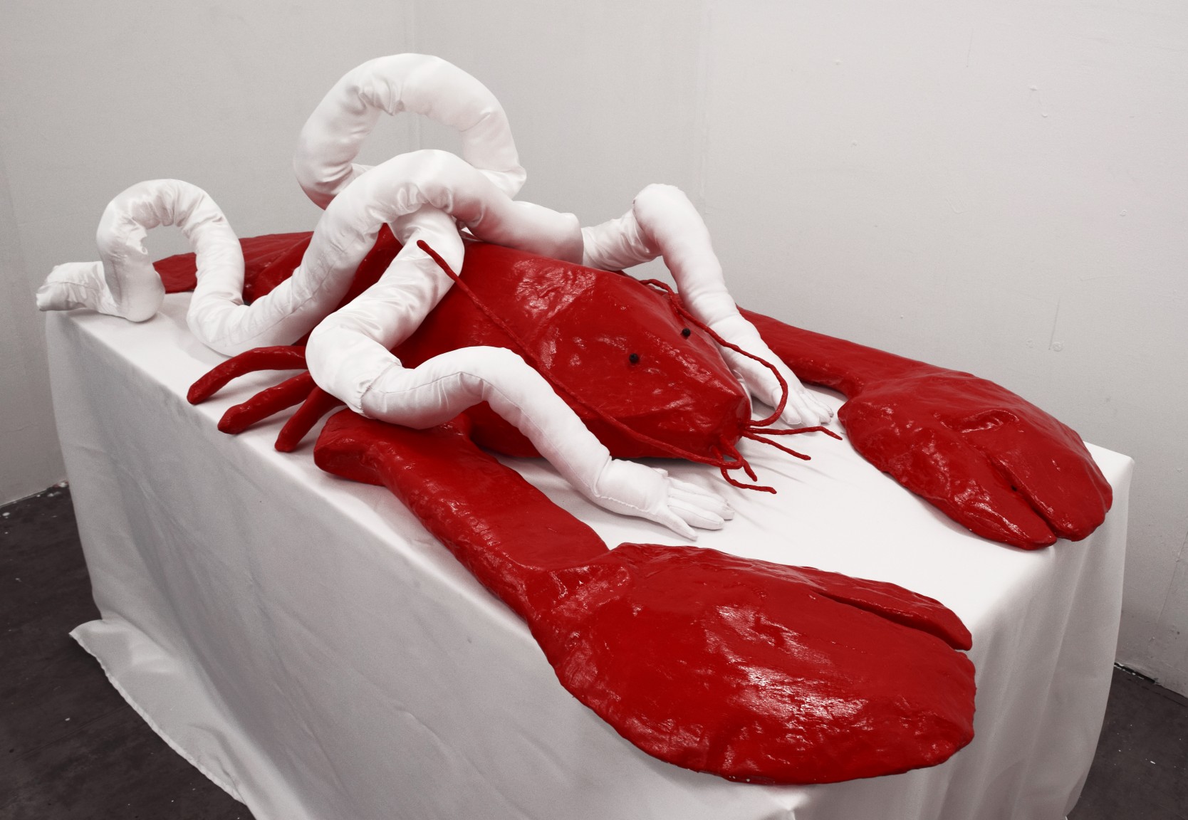 Natassja Drobinski‘s work is a visual exploration of the surreal world in which glamorous billionaires exist, and the artist’s own relationship to class. She utilises visceral and playful sculptural shapes to explore issues surrounding the wealth gap and food poverty, by looking at greed and gluttony with a sense of the absurd.