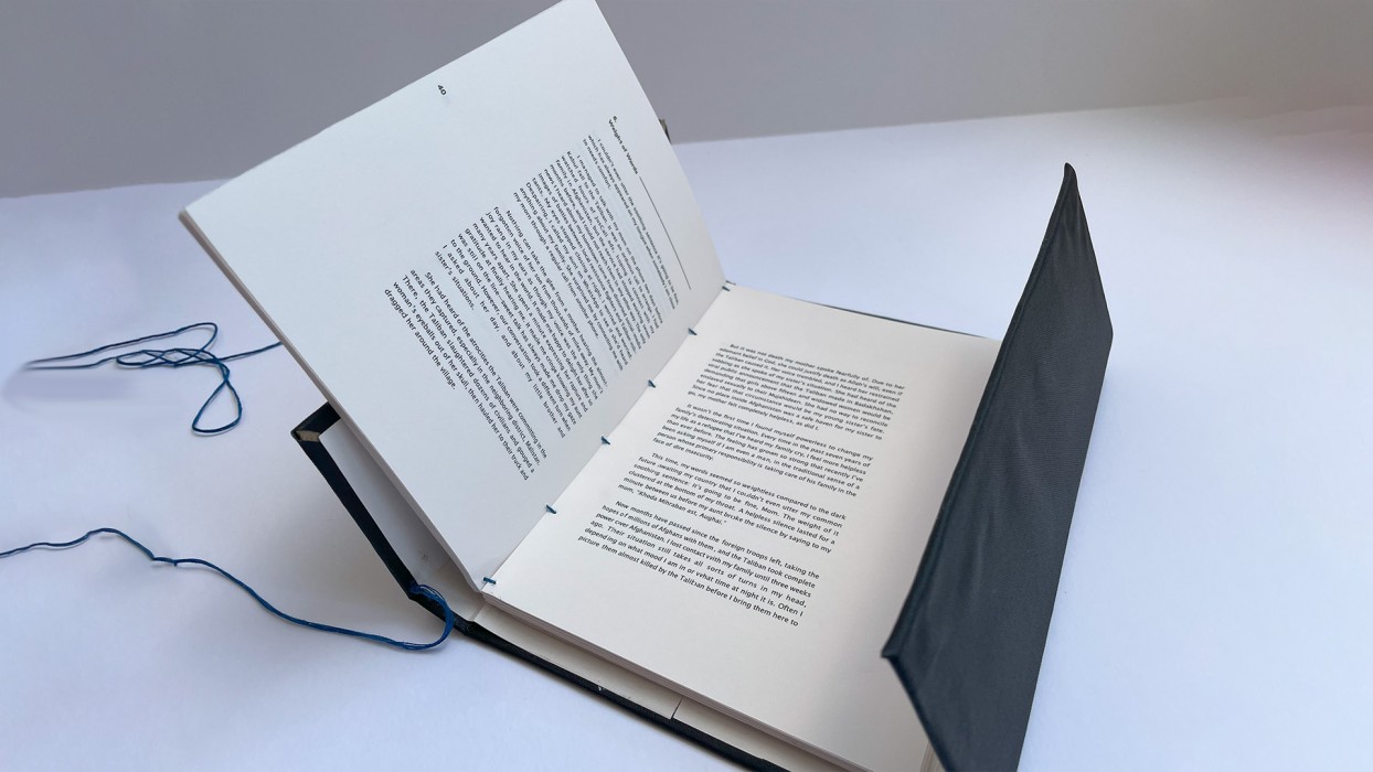 Eleanor Parkes has formatted and designed Hussain’s writings into a publication after being inspired from talking to Hussain about his experiences. Hussain mentions how he feels it difficult as a man to open up about his situation, and how writing serves as an avenue for him to express himself and escape from his everyday life. With this in mind, Eleanor has created a publication that is designed to reflect Hussain’s journey of opening up through his writing.