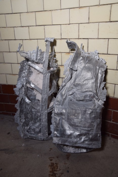 Whilst often working with ready-made objects as a starting point, Grace Clifford finds resonance in the processes of metalworking. The Meaning of Hard Work is a cast of the overalls given to Clifford by her father (himself a factory worker) after she began learning to weld.