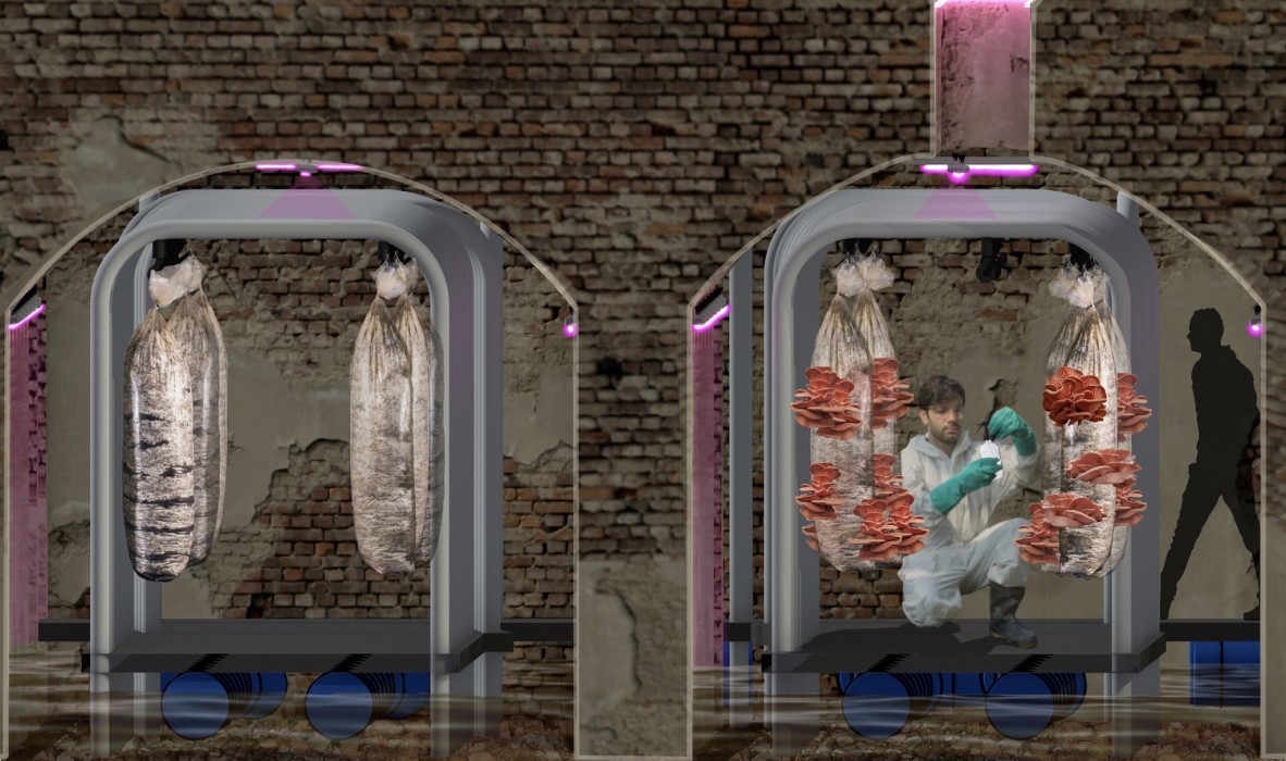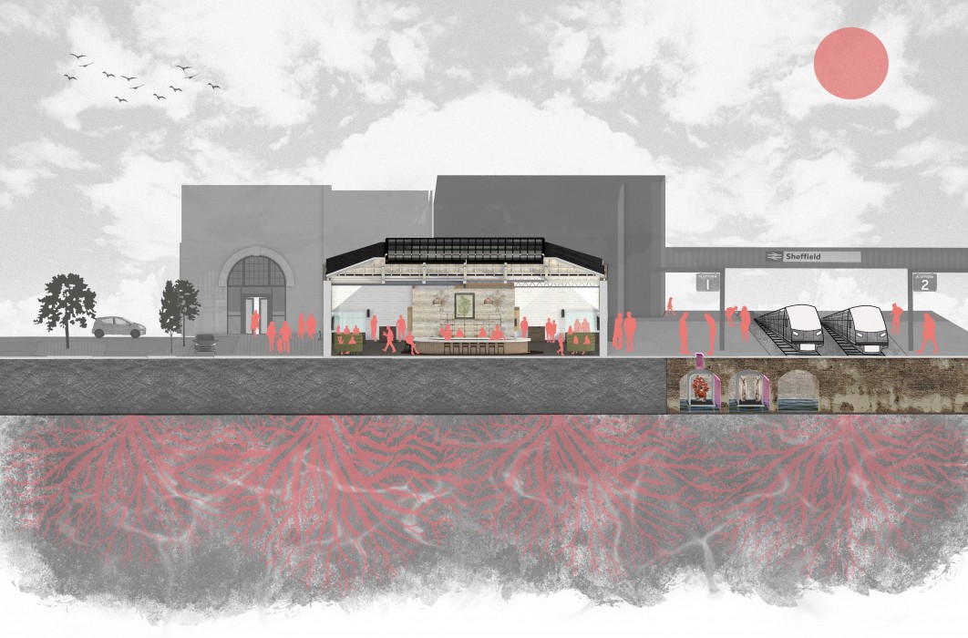 Mushroom foraging is a hobby undertaken in the Peak District, a short train ride away from Sheffield. This project takes that concept and brings it into the city centre – with an underground urban farm and restaurant in the train station.