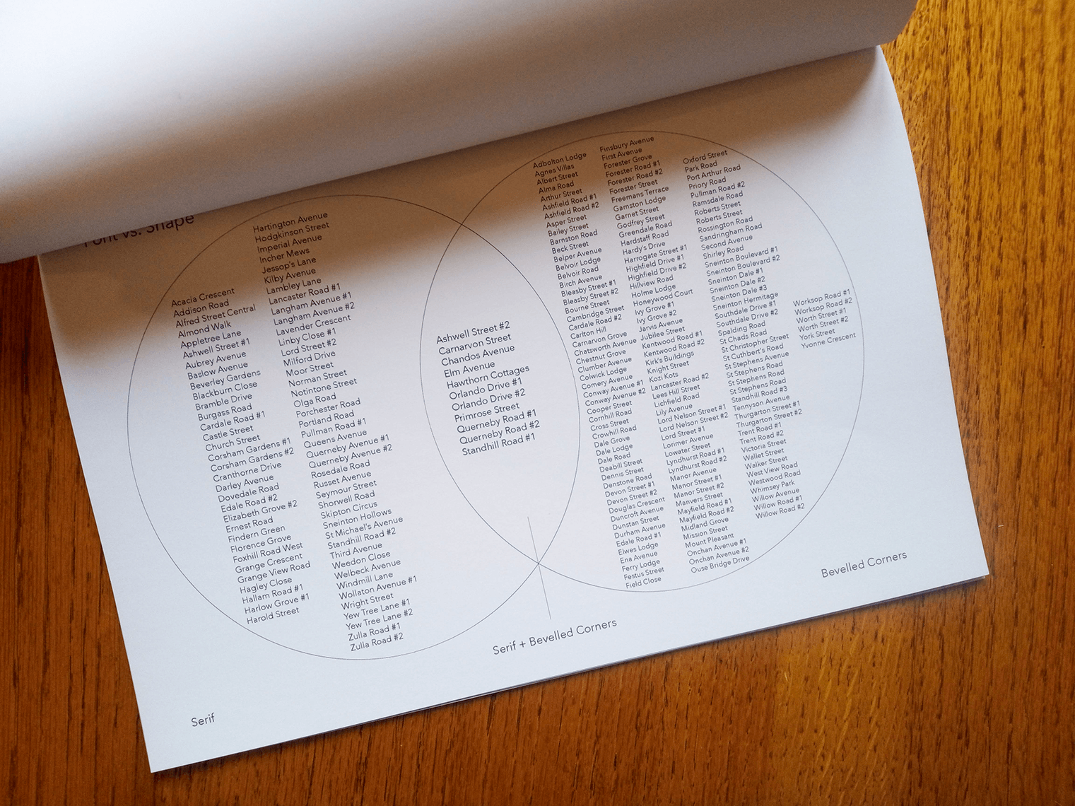 What started as intrigue for a somewhat mundane object, quickly grew into a fanatic-like quest to categorise and archive these signs. She has created mind-map tree diagrams and an extensive navigable database of them, as well as a beautiful printed booklet.