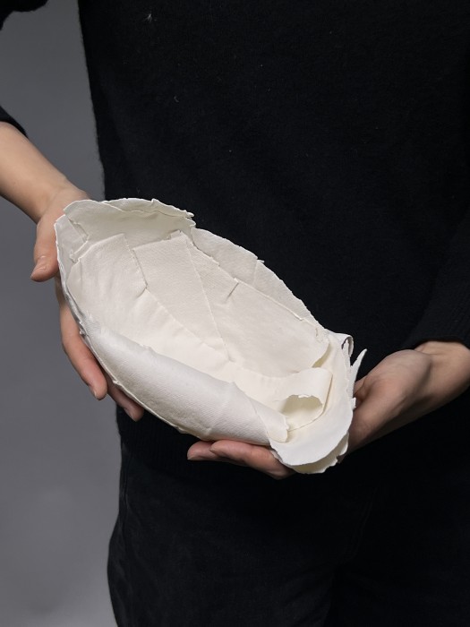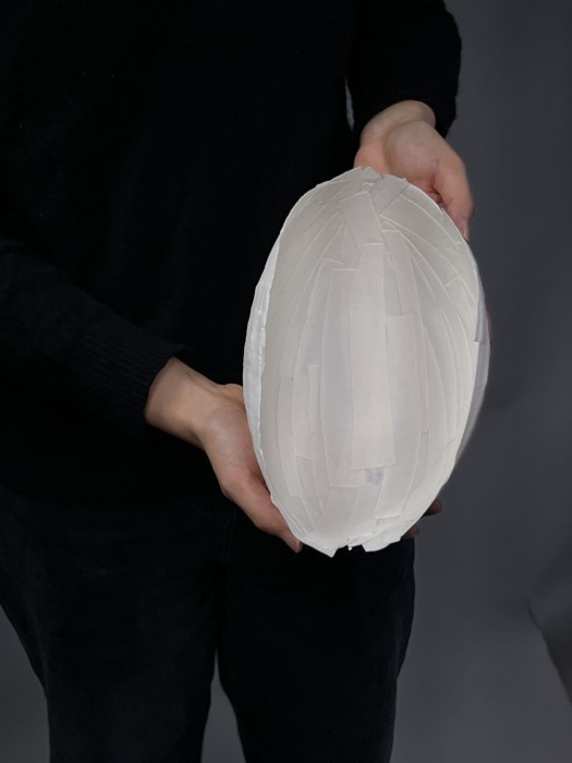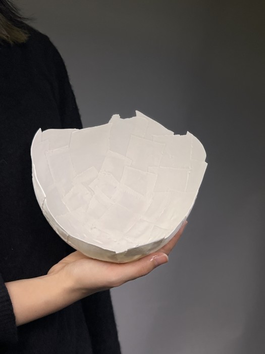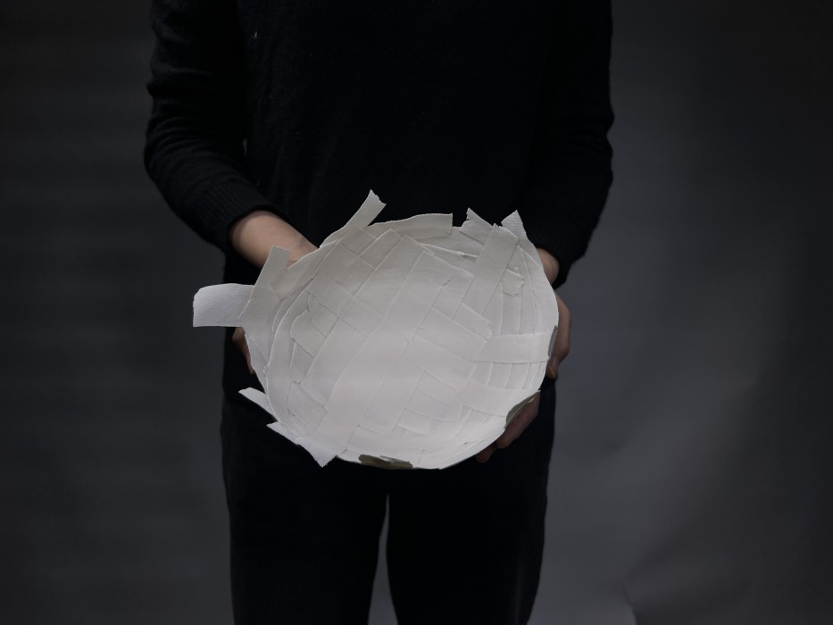 Cheng Jiayi has imagined the traces of her mother’s pregnant stomach, traces inscribed by her as she moved about in the womb, as a way of understanding her connection, thoughts and love for her mother, far away from home.