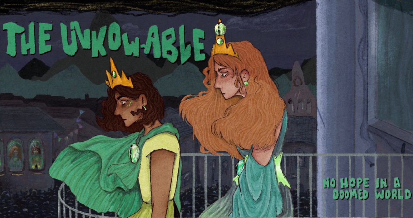 Five years ago the world was assailed by a dark swirling mass that seemed to appear in the sky out of nothing, after months of study on its descent, the world was given ten years from its appearance until some kind of impact, giving the mass its name amongst the populace as “The End”. “The Unknowable” follows four central characters, all determined in their own ways to fix a world taken hostage by the fear of “The End”. Whilst they all have struggles and fears surrounding their lives and fate, their bond is what binds them, and will eventually keep them going through anything this world throws at them.