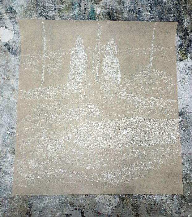 Avellana is connected to the term Genius Loci; since childhood, she has always had a strong sense of the personality belonging to areas of land. This exists in populated places, too, but it is harder to hear them. There have been times, since she was a child, when she has felt so disconnected from her own body that it became a landscape, and she disappeared into its imperfections as if it no longer belonged to her. Her body is a space, and the land is a space, and in quiet, liminal landscapes, they are talking. She is tracking the entanglement of this by drawing another space—the one we can’t see.