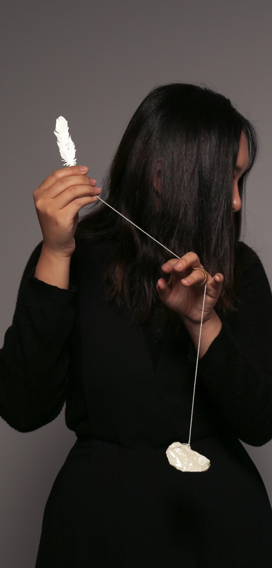 Xiaoron Ma’s work focuses on the ideology that the value of jewellery is determined not only by its materials, but also the stories and emotions behind the piece, and the value it brings to the individual and society. During their MA project, Ma uses jewellery as an instrument to represent the imbalance of power in the context of marriage in Chinese culture. Ma is inspired by her parents’ divorce combined with people’s attitudes about marriage and social phenomena across China.