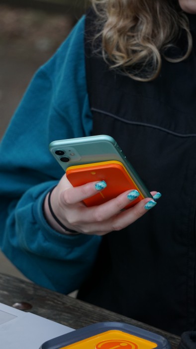 This proposal aims at reducing this figure by encouraging users to monitor the amount of charge they use while also reducing the human led factors that could result in a flat battery. The power bank is made up of 3 components; the main body and the 2 modules that fit either side. These modules can be removed and thanks to magsafe technology snap to the back of an iPhone and provide charge wirelessly.