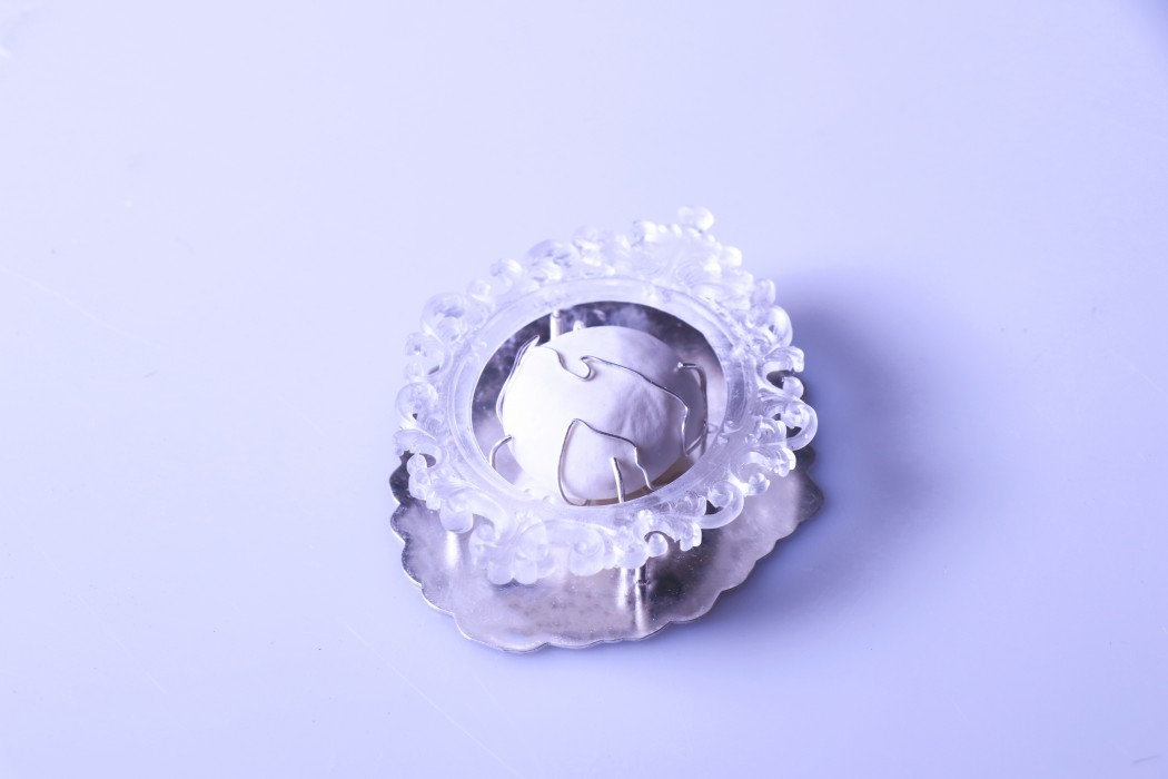 Iceberg Memories Locket, 2024. silver, steel, sand