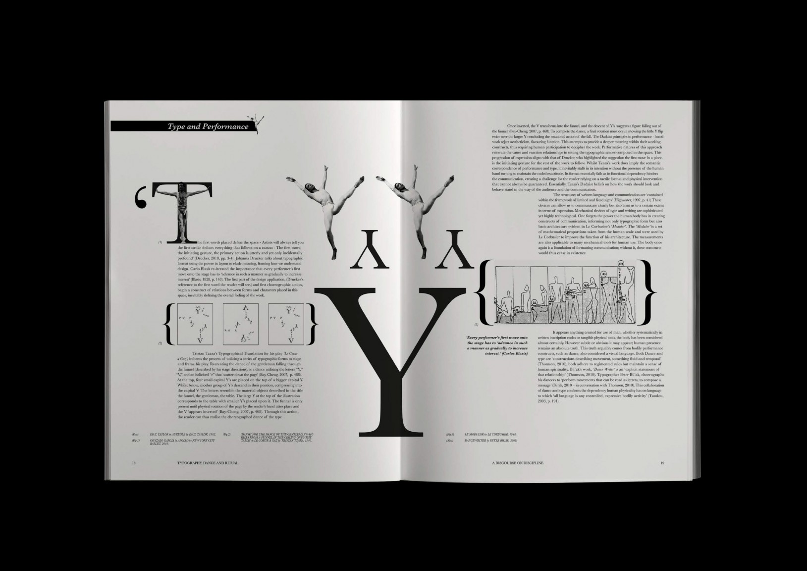 With a layout informed by the musical score measurements from the Neoclassical ballet Agon, the soon to be printed publication examines the non-consecutive timeline both typography and dance share; traced through ancient, classical, romantic and neoclassical periods.