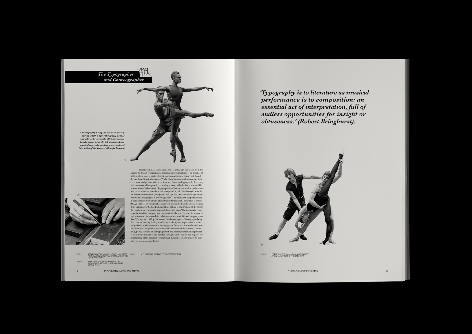 Cat Spivey has critically analysed the relationships and sophisticated communication modes in both typography and dance, in publication Typography, Dance and Ritual.