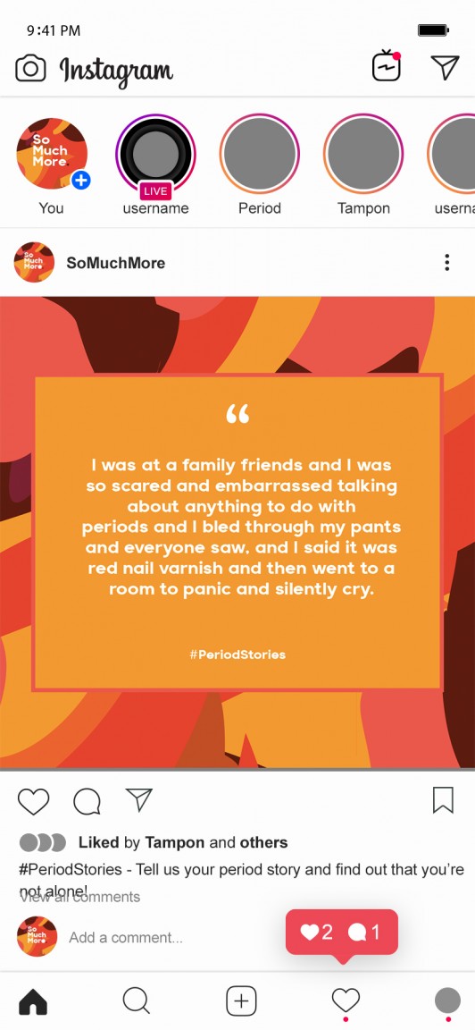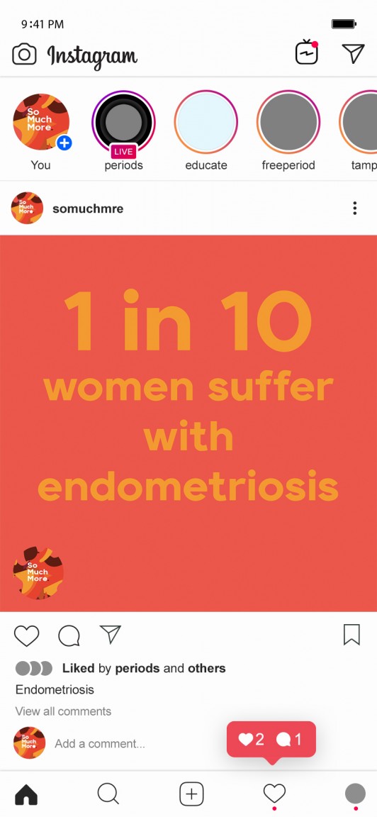 With girls can beginning menstruation between ages 8-16, Chloe Brooks‘ social media campaign for a teenage audience has a medical focus, with factual posts, interactive filter and real period stories.