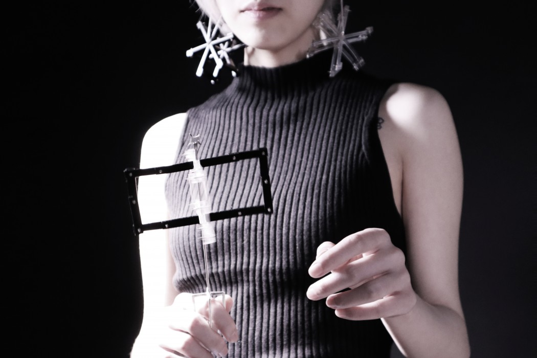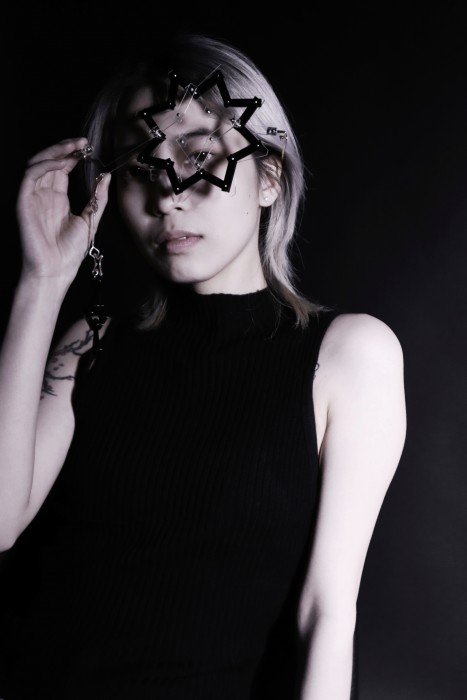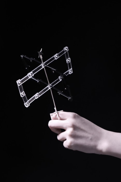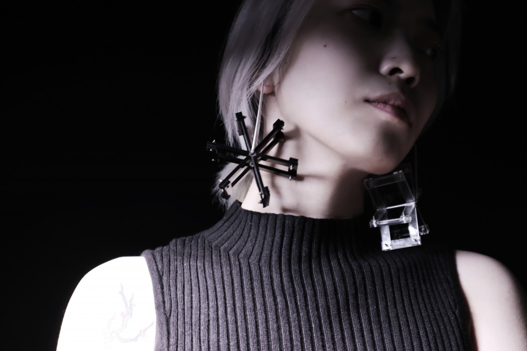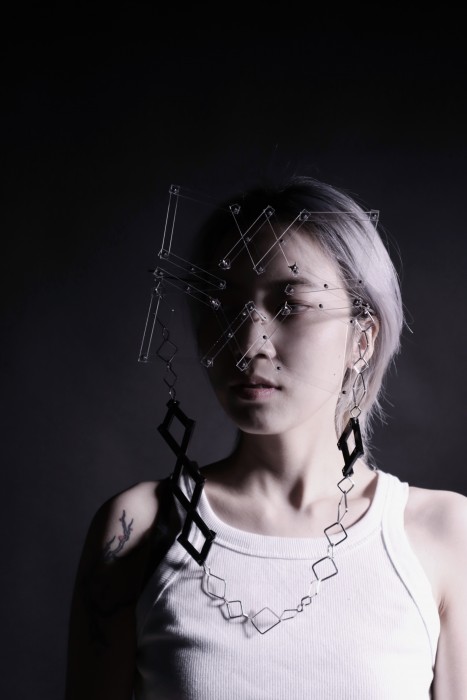 Yi Liu has used a dynamic geometric language, to convey invisible motivations: expressing the variability of people’s personality through jewellery. Inspired by Friedrich Becker’s dynamic jewellery Liu uses the characteristics of geometric shapes to extend and merge into different movable forms. Here statement eyewear is designed with radial and spring-like movable elements, showing and amplifying emotions and increasing confidence. Other pieces make associations with images that can inspire motivation, such as the rocket that carries infinite energy when worn on the large arm; the gears that are earrings that keep on running in their trajectory; and the future signposts that are worn on the finger to guide us when we are lost.